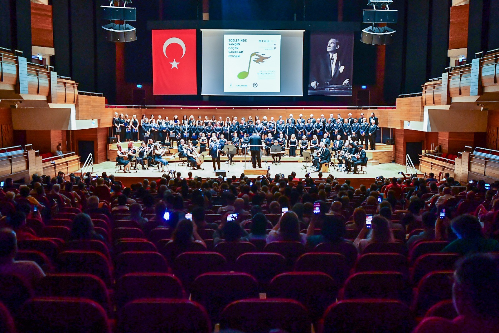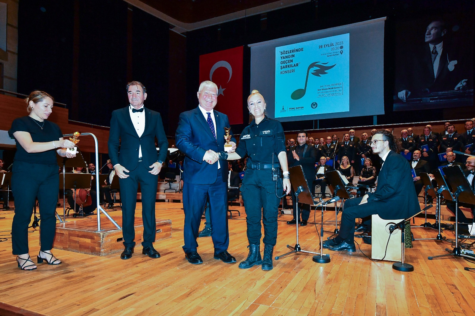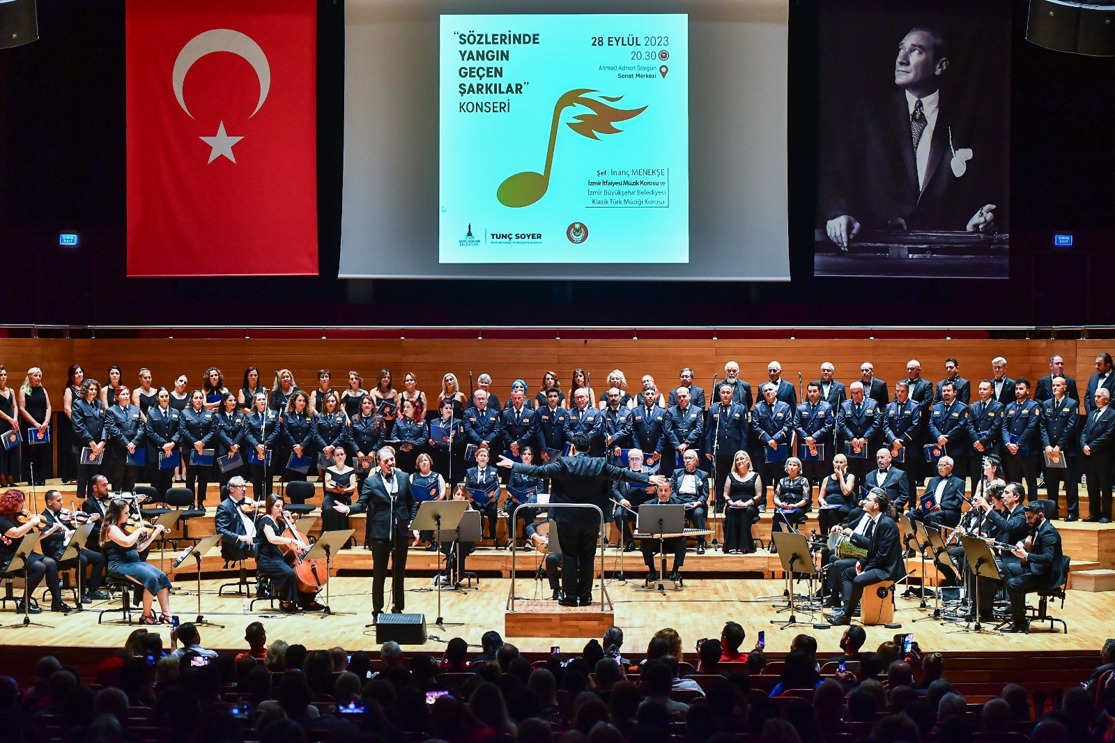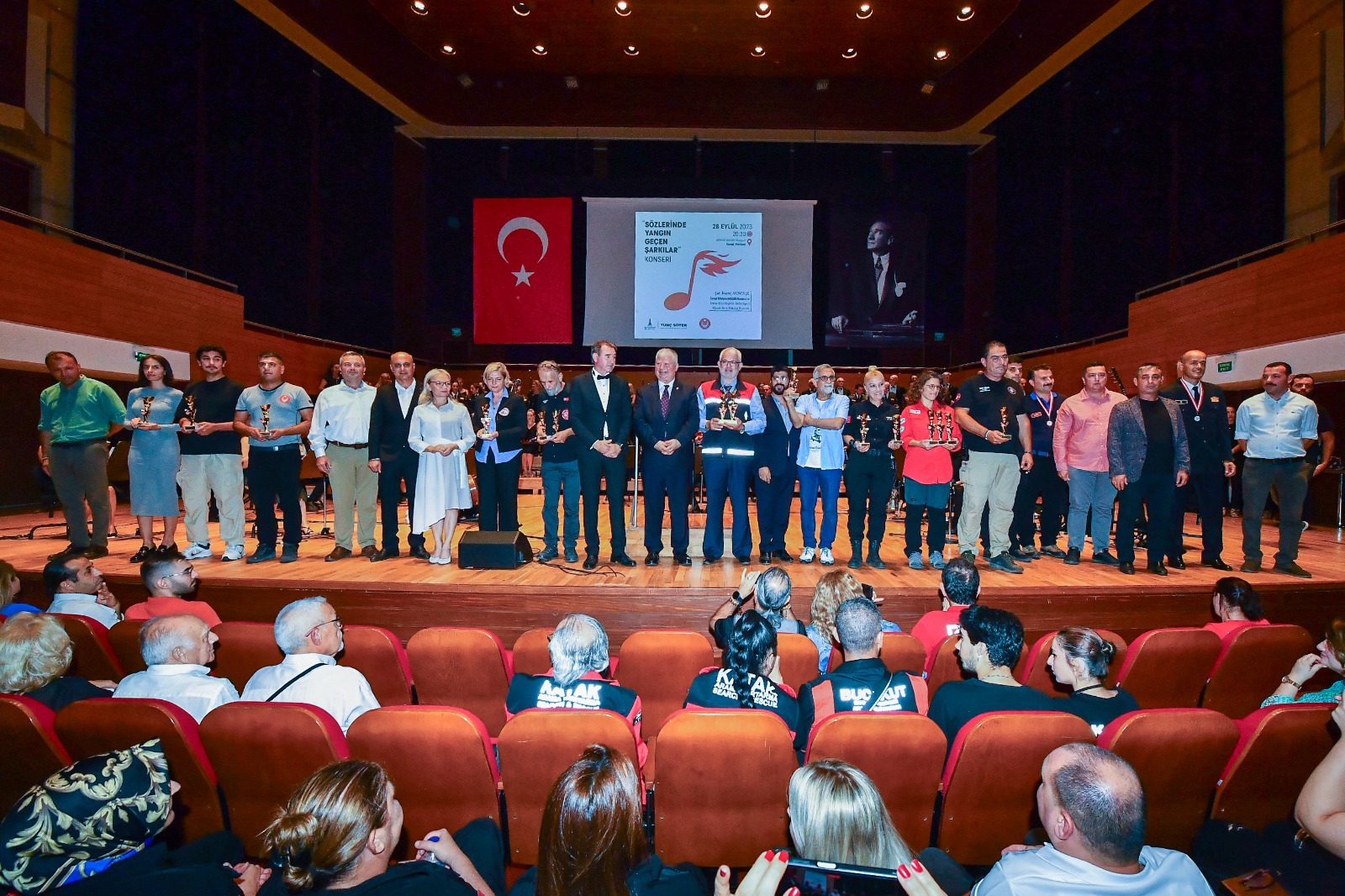 Ahmed Adnan Saygun Sanat Merkezi’ndeki konsere İzmir Büyükşehir Belediye Başkan Vekili Mustafa Özuslu, İzmir Büyükşehir Belediyesi Genel Sekreter Yardımcısı Şükran Nurlu, İtfaiye Dairesi Başkanı İsmail Derse, itfaiye personeli, Büyükşehir Belediyesi bürokratları ve yurttaşlar katıldı. Başkan Vekili Mustafa Özuslu, “O kadar kutsal bir iş yapıyor ki itfaiyeciler. Dünyanın her yerinde en saygın meslek olarak kabul ediliyor itfaiyecilik. Aklımıza doğrudan fedakarlık geliyor. En zor anımızda bize el uzatan insanlar geliyor. Onlar bizim baş tacımızdır” dedi.