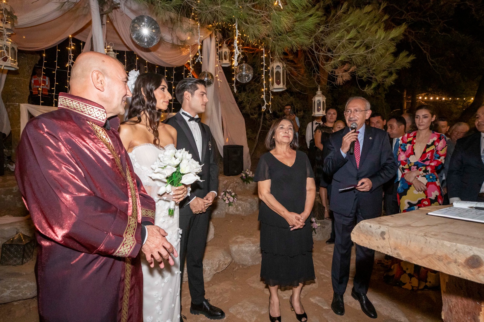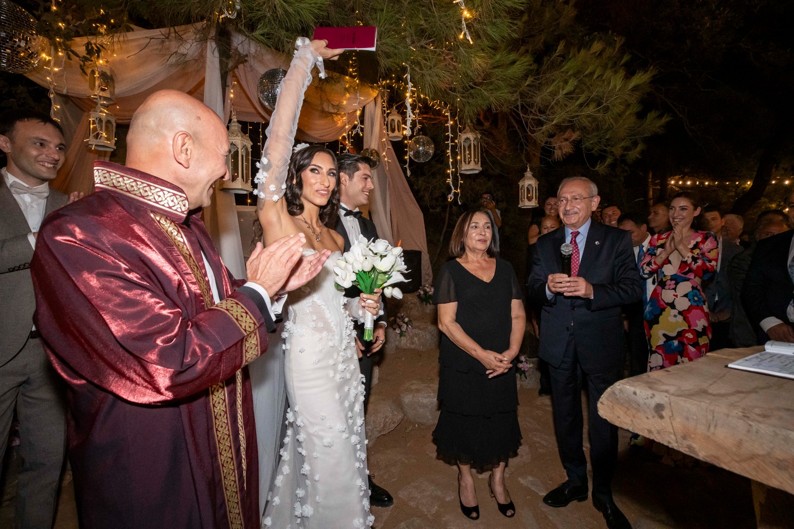 Nikah töreninde konuşan CHP Genel Başkanı Kemal Kılıçdaroğlu, “Böylesine güzel bir düğünde sizlerle bir arada olmak benim için çok önemli. Sizlere güzel torunlar verecekler, sakın ola ki o torunlar Mustafa Kemal Atatürk’ün yolundan ayrılmasınlar. Arada bir tartışacaksınız ama barışmayı da unutmayın” dedi ve nikâh cüzdanını Duygu Soyer’e teslim etti.