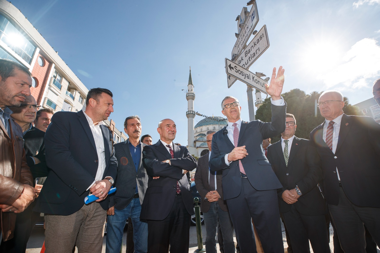 İzmir Büyükşehir Belediye Başkanı Tunç Soyer, Gaziemir Abdullah Arda Meydanı ile yine meydanın bitişiğinde yer alan bina cephelerinin düzenlenmesine yönelik süren çalışmaları inceledi. Gaziemir Belediye Başkanı Halil Arda'nın da yer aldığı programda Başkan Soyer, bürokratlardan çalışmalar hakkında bilgi aldı. Yaklaşık 11 milyon liraya mal olacak kentsel taşarım projesinin yıl sonuna kadar biteceğini söyleyen Başkan Soyer, “Meydanı hem yurttaşlarımızın hem esnafımızın kullanımına uygun olarak iyileştiriyor ve niteliğini artırıyoruz. İzmir'in gelişmesi için gece gündüz çalışıyoruz. Ekonomik krize inat yatırımlarımız sürüyor” dedi. İlçede esnafı da ziyaret eden Tunç Soyer, yurttaşlarla sohbet etti.