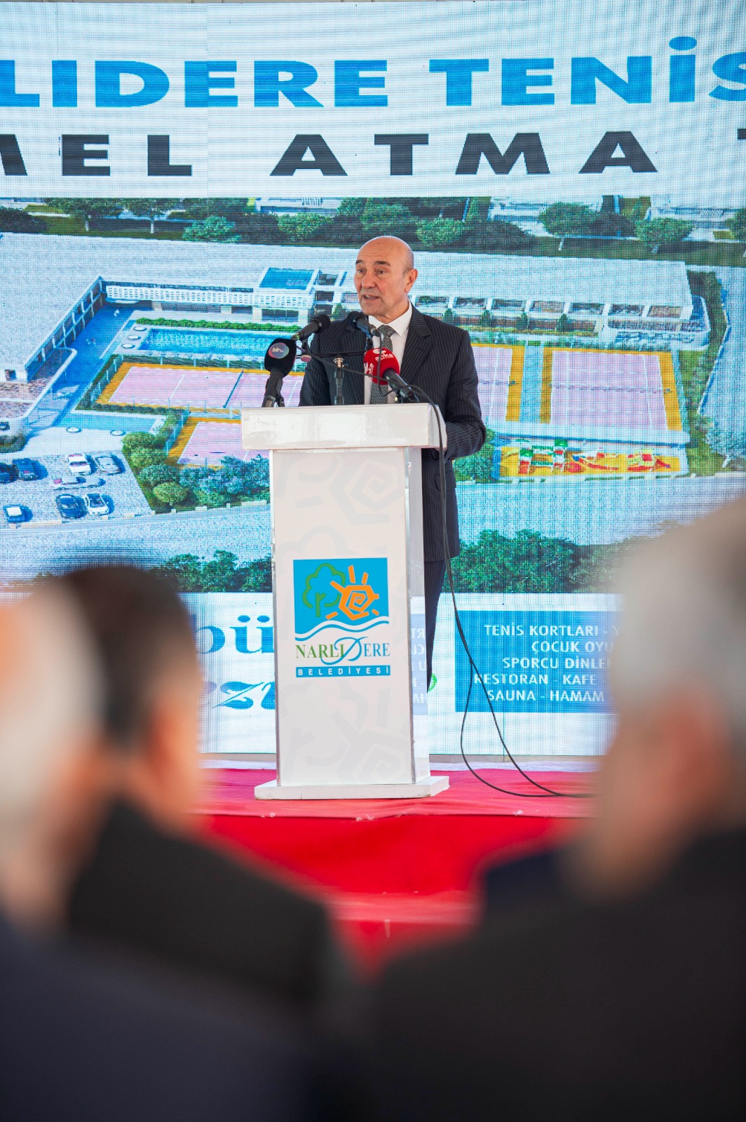 Tesisin İzmir’de spor alanında atılan önemli bir adım olduğunu ve projenin çok değerli olduğunu belirten Büyükşehir Belediye Başkanı Tunç Soyer, “Bu tesis İzmir'in en kapsamlı tenis merkezi ve spor salonlarından biri olacak. Ulusal ve uluslararası birçok organizasyona ev sahipliği yapacağız. İzmir’de tenis sporunun tabana yayılması ve lisanslı sporcu sayısının artırılmasını mümkün kılacak Narlıdere Tenis Kulübü sayesinde İzmir’den, ülkemizin tenis altyapısına da önemli katkı vermiş olacağız. Tesisin Avrupa’nın en genç ülkesi konumundaki Türkiye’nin her branşta olduğu gibi teniste de uluslararası başarı elde edecek sporcuları yetiştireceğine inanıyorum” diye konuştu.