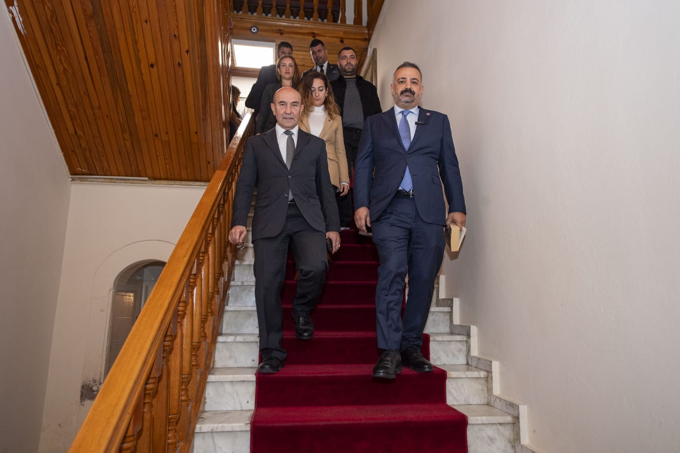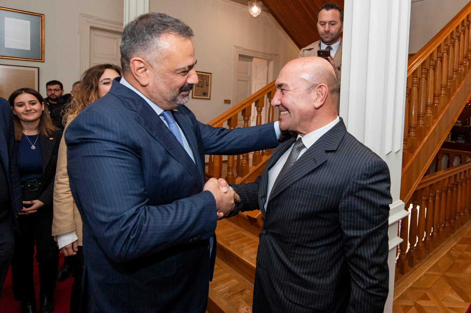 İzmir Büyükşehir Belediye Başkanı Tunç Soyer’e 9 Eylül İzmir’in kurtuluşunun 100’üncü yılı kutlamalarındaki konuşmasından dolayı İçişleri Bakanlığı tarafından açılan soruşturmaya yönelik tepkiler sürüyor. CHP İzmir İl Başkanı Şenol Aslanoğlu ve il yönetim kurulu üyeleri Egemenlik Evi’ndeki başkanlık makamını ziyaret etti.