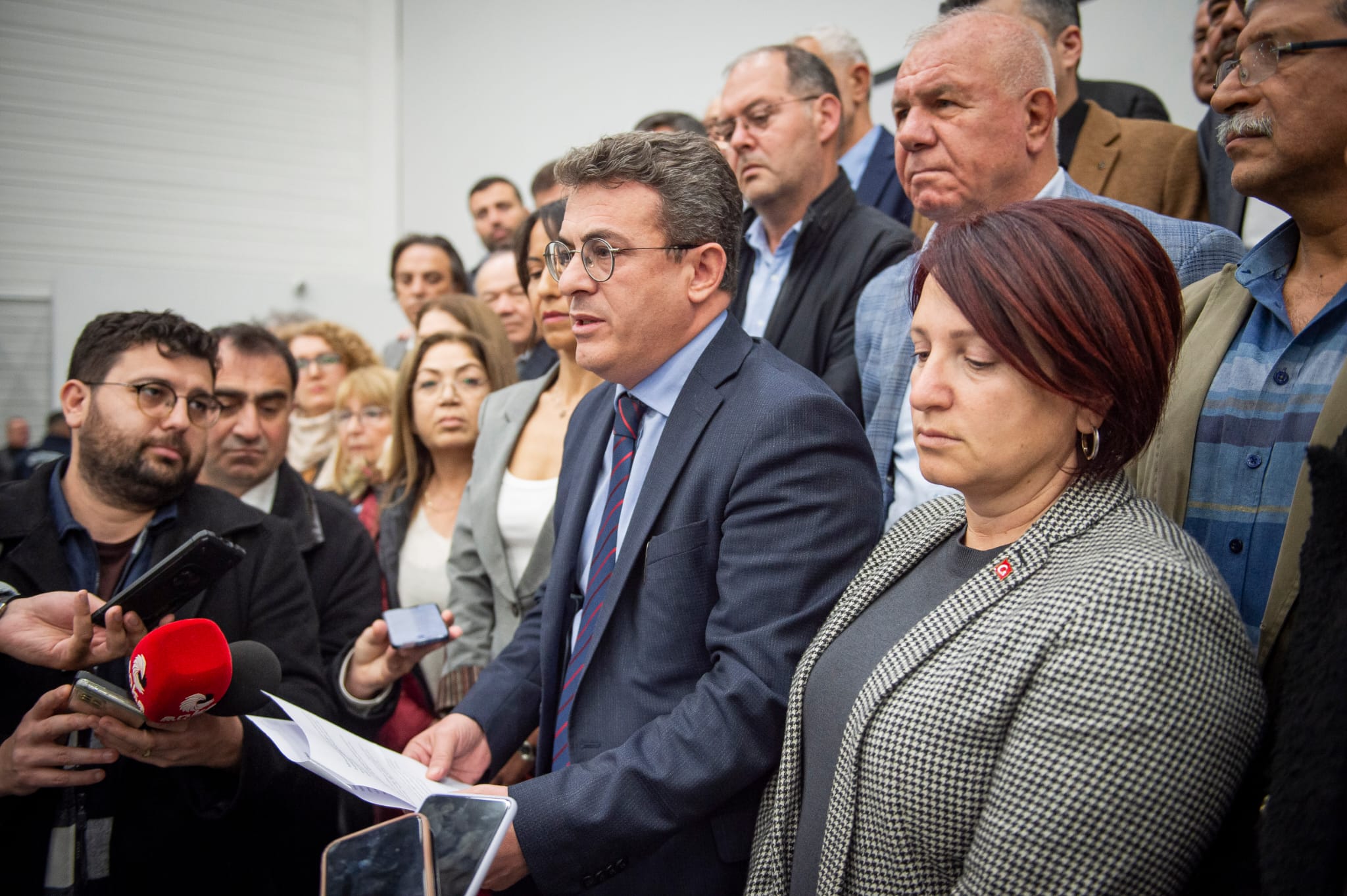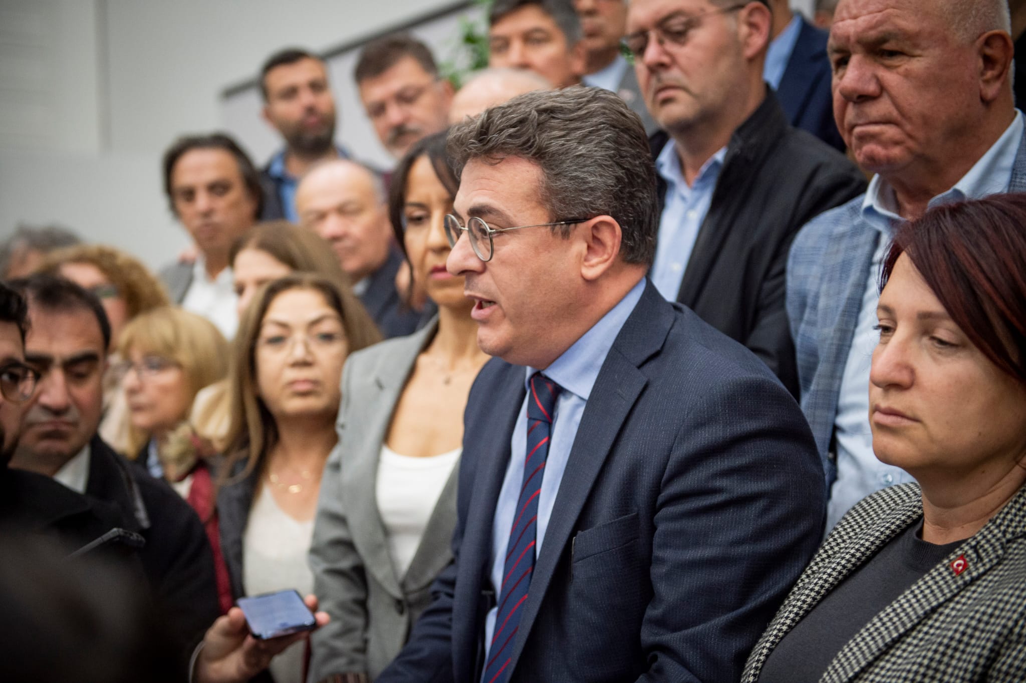 İzmir Büyükşehir Belediye Başkanı Tunç Soyer’e 9 Eylül İzmir’in kurtuluşunun 100’üncü yılı kutlamalarındaki konuşmasından dolayı İçişleri Bakanlığı tarafından açılan soruşturma sonrasında Cumhuriyet Halk Partisi’nden (CHP) tepkiler gelmeye devam ediyor. İzmir Büyükşehir Belediyesi CHP Meclis Grubu da, Kasım ayı meclis toplantısının beşinci birleşimi öncesinde meclis salonu önünde Başkan Soyer’e destek açıklaması yaptı.
