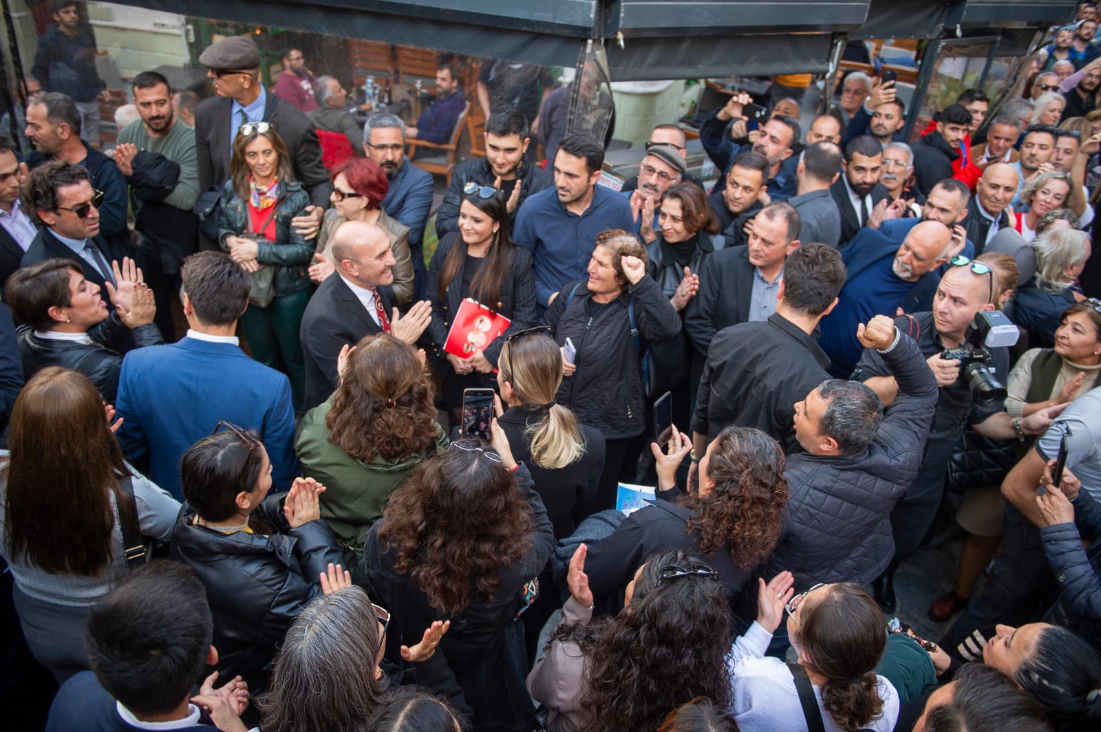İzmir Büyükşehir Belediye Başkanı Tunç Soyer’e 9 Eylül İzmir’in kurtuluşunun 100’üncü yılı kutlamalarındaki konuşmasından dolayı İçişleri Bakanlığı tarafından açılan soruşturma sonrasında toplumun çeşitli kesimlerinden tepkiler gelmeye devam ediyor. CHP İzmir İl ve ilçe örgütlerinin üyeleri de destek için bir araya geldi. CHP İzmir İl Başkanı Şenol Aslanoğlu, İzmir Milletvekilleri Mahir Polat ile Yüksel Taşkın’ın da katıldığı ve başkanlık makamının yer aldığı İzmir Büyükşehir Belediyesi Egemenlik Evi önündeki buluşmada önemli mesajlar verildi. Başkan Soyer’e gönülden destek veren topluluk “Mustafa Kemal’in Askerleriyiz” ve “Hak Hukuk Adalet” sloganları attı.