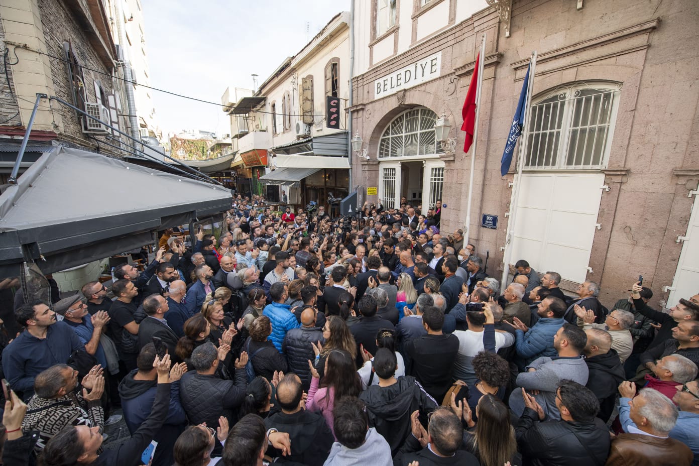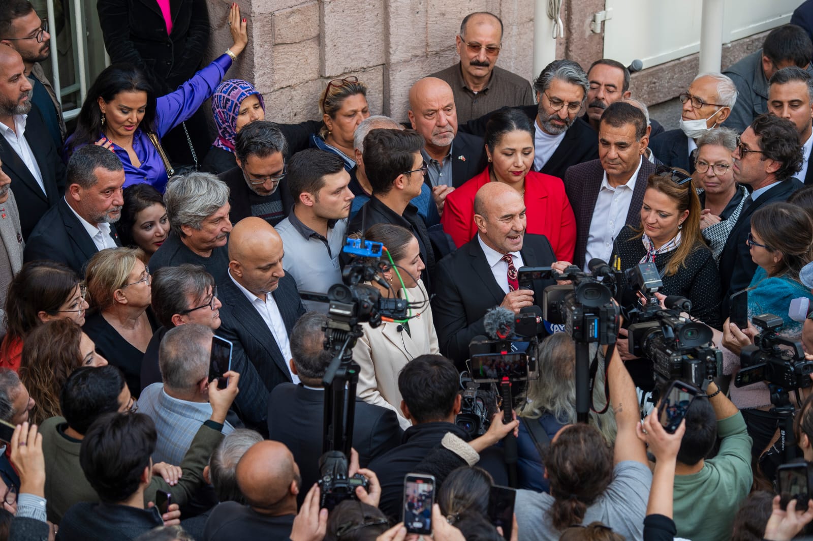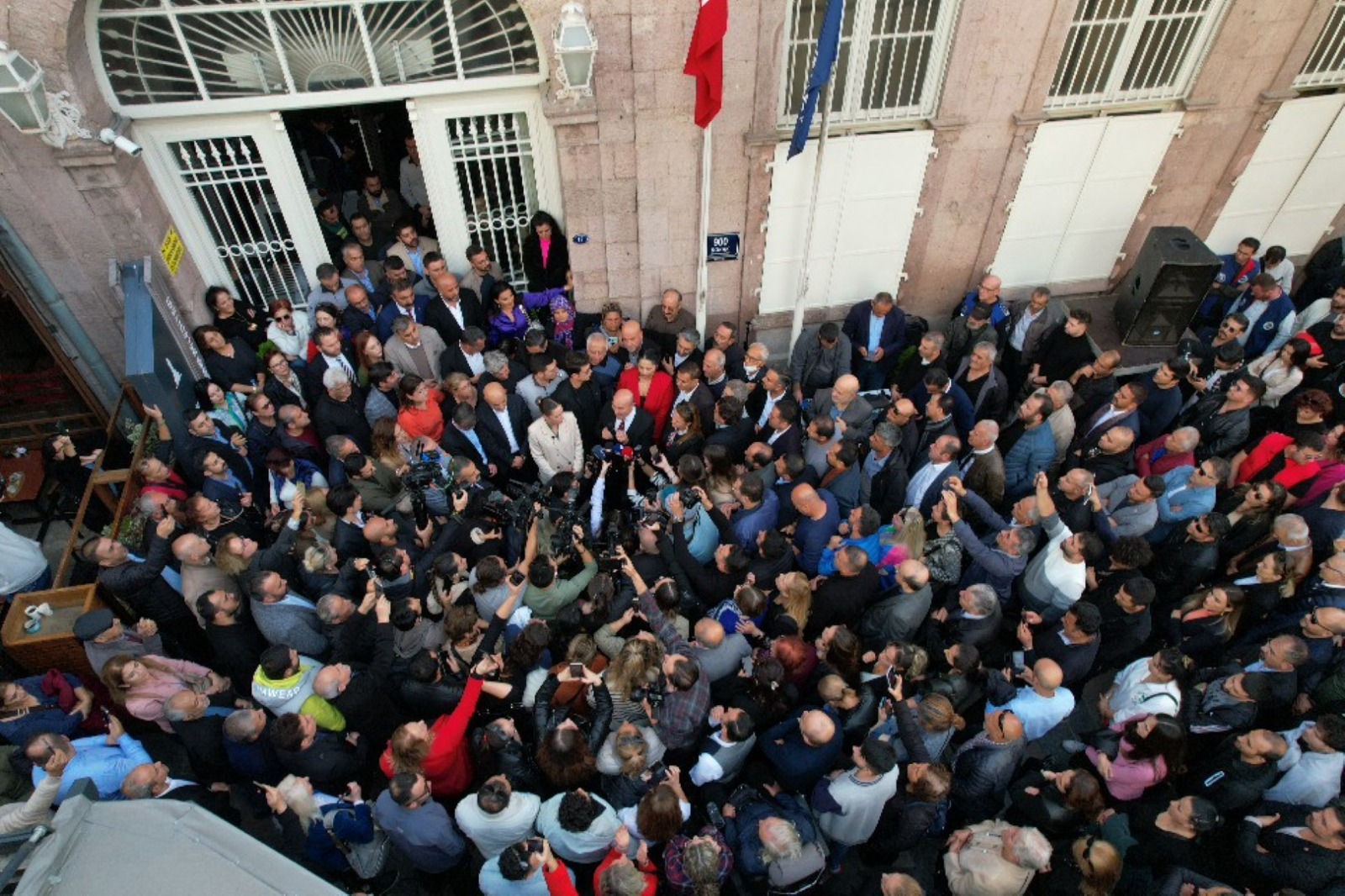 9 Eylül’ün 100’üncü yılı kutlamalarında Atatürk’ün Nutuk kitabından alıntı yaptığı için açılan soruşturma nedeniyle CHP İzmir İl Örgütü ve ilçe örgütleri Başkan Tunç Soyer’i makamında ziyaret etti. Egemenlik Evi önünde miting havasında yapılan programda konuşan Başkan Soyer, “100 sene önce kapanan bir defteri tekrar açmak istiyorlar. Yok öyle yağma! Biz Cumhuriyet’in, Mustafa Kemal Atatürk’ün bekçisi olmaya devam edeceğiz” dedi.