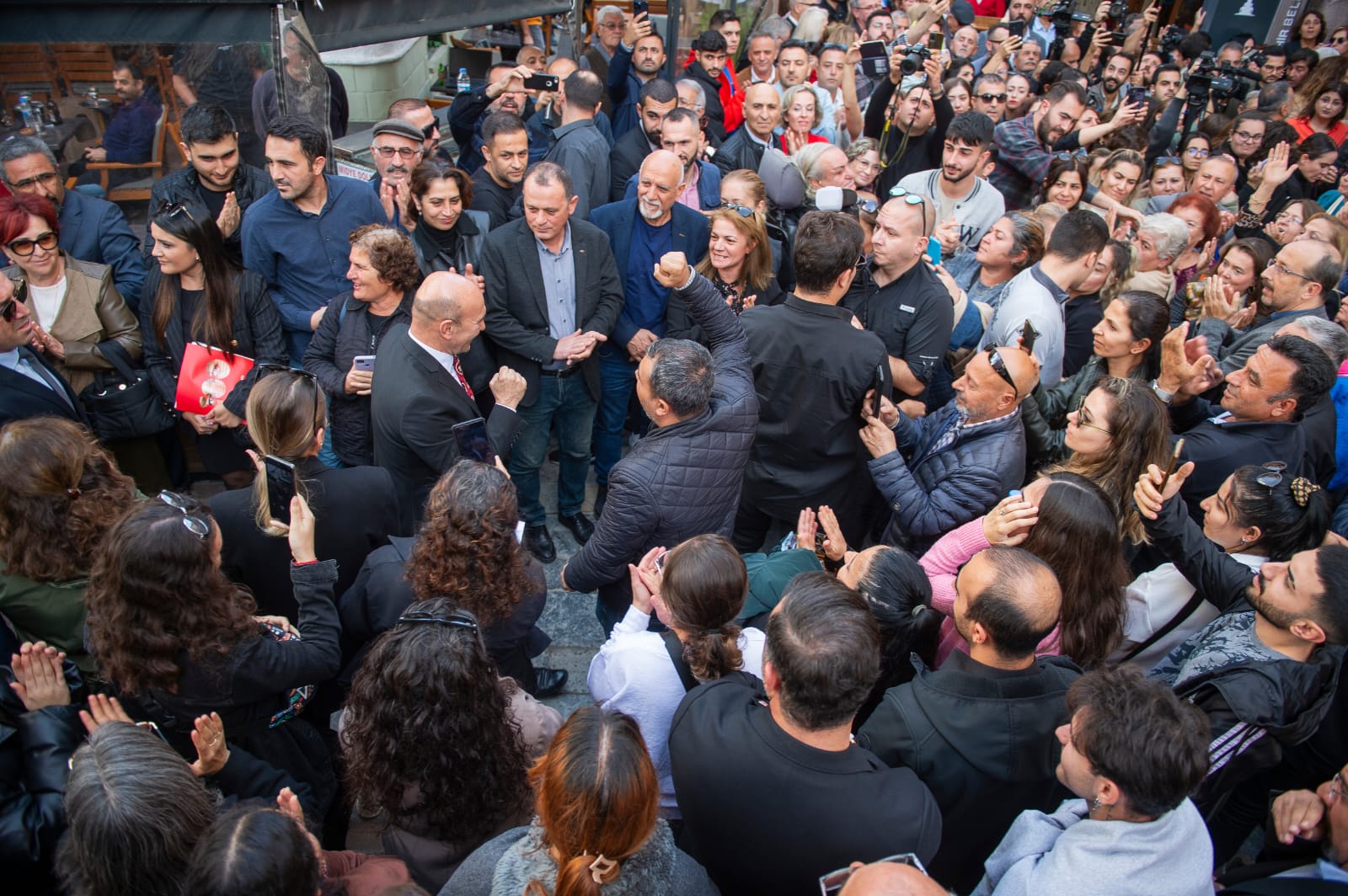 CHP İzmir Milletvekili Mahir Polat, “Hepinizin gördüğü üzere burada Kuvayı Milliyecilerin torunları var. Burada memleketi terk edip, parsel parsel bırakıp yok eden Vahdettin’in torunları yok. Biz inadına Mustafa Kemal Atatürk, inadına demokrasi, inadına CHP ve Cumhuriyet değerleri diyeceğiz. Ve bunu söyleyen Tunç Soyer’e tüm ilçe örgütlerimiz, il örgütümüzle, halkımızla, işçilerimizle birlikte sahip çıkmaya geldik. Başkanımız bir Sayıştay denetlemesi geçirdi. Zerre kadar bir sorun bulamadılar, bula bula Nutuk’tan alıntıladığı konuşmasından bir sonuç çıkarmaya çalışıyorlar. Yemezler. O kadar kolay değil. Tunç Soyer boğazınıza oturur, kolay lokma değil. Arkasında Mustafa Kemal’in askerleri var” dedi.
