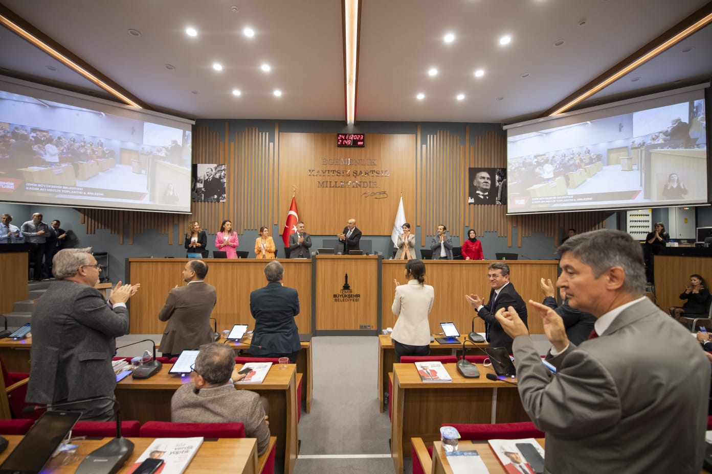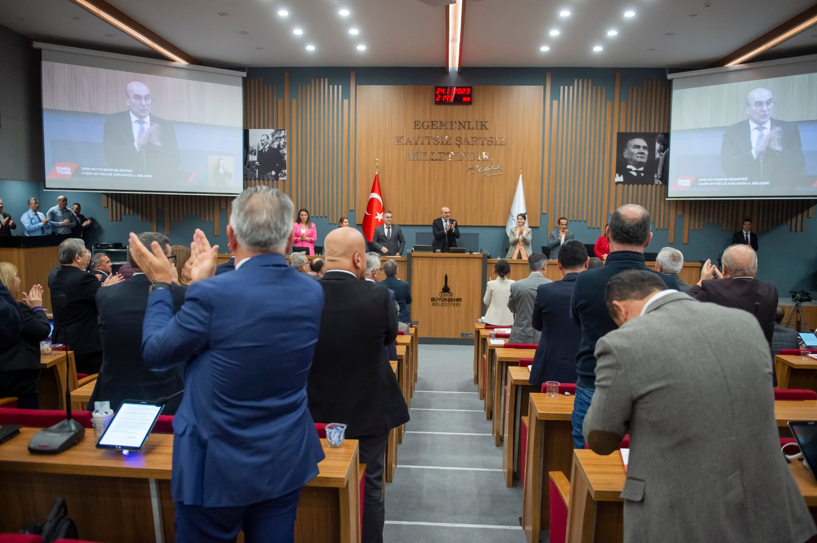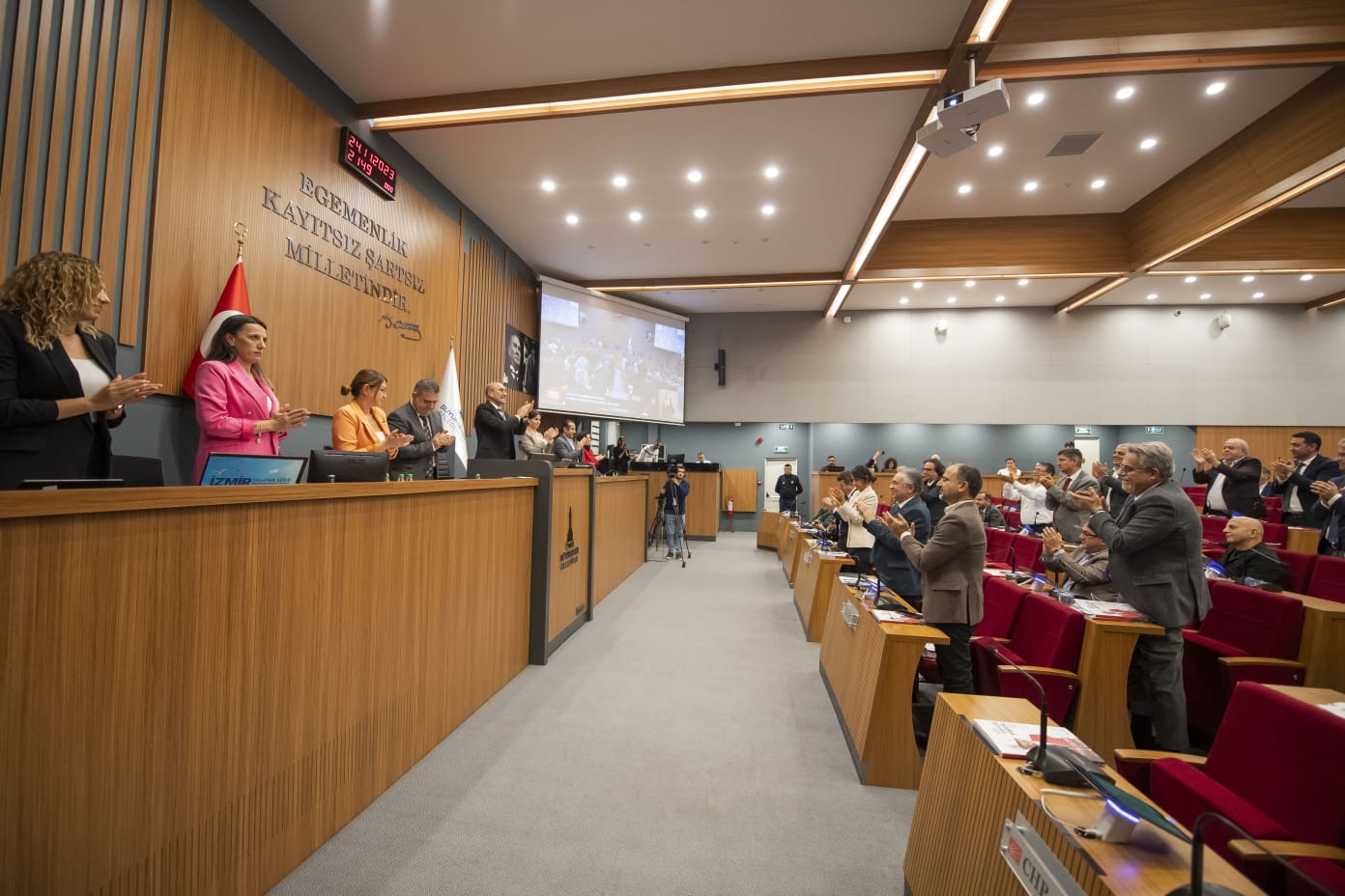 Başkan Soyer geride kalan 4 buçuk yıllık çalışma yılının ardından tüm meclis üyelerini ayakta alkışladı.