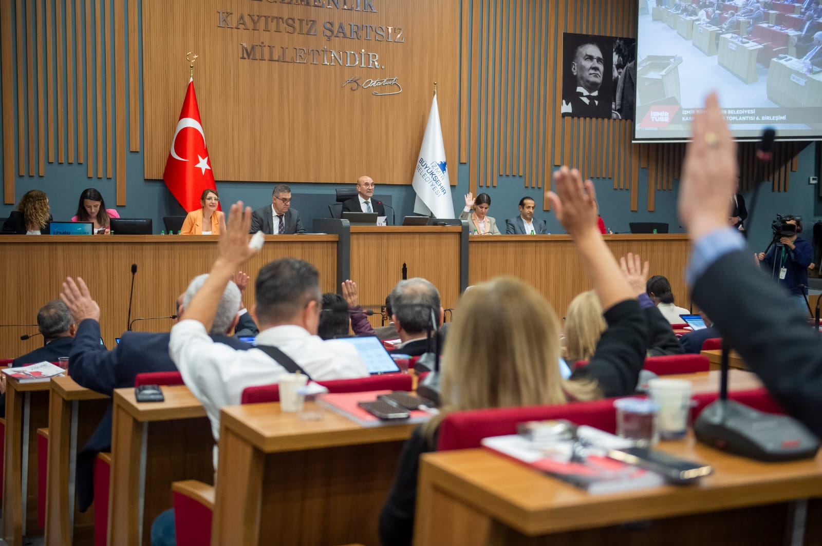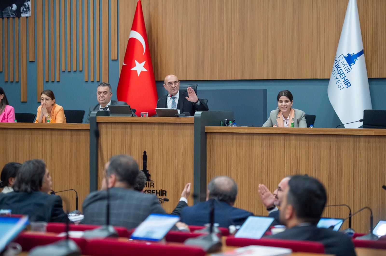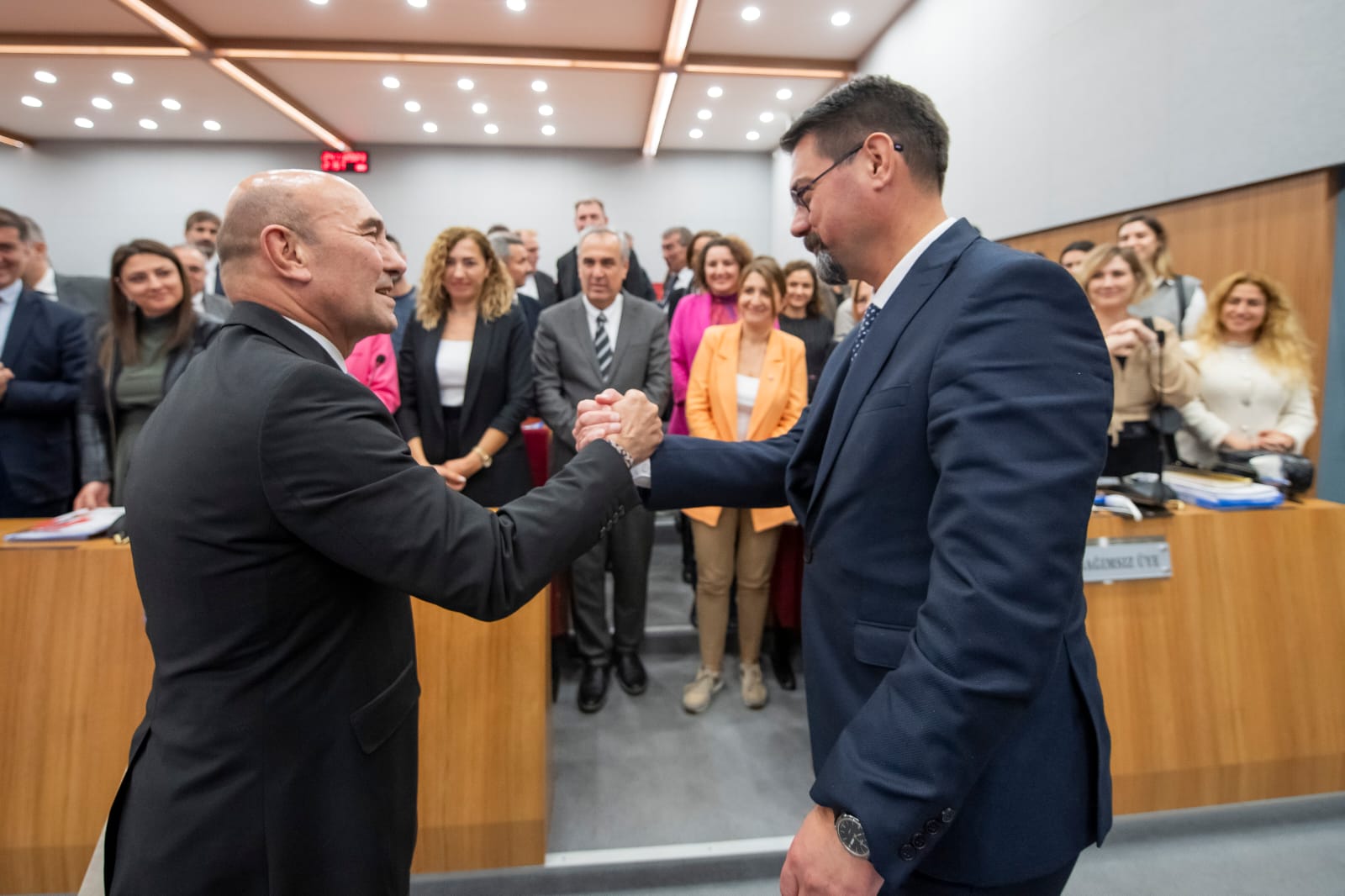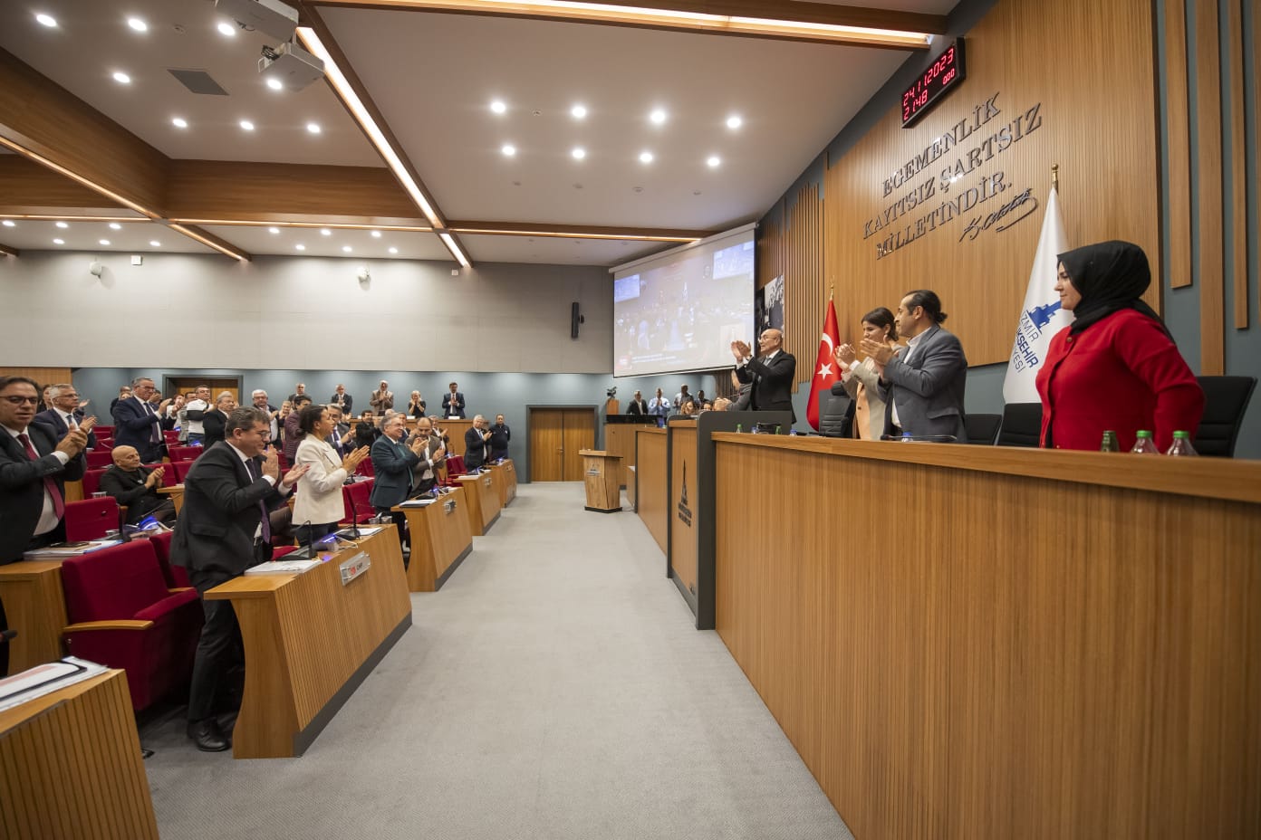 Başkan Soyer geride kalan 4 buçuk yıllık çalışma yılının ardından tüm meclis üyelerini ayakta alkışladı.