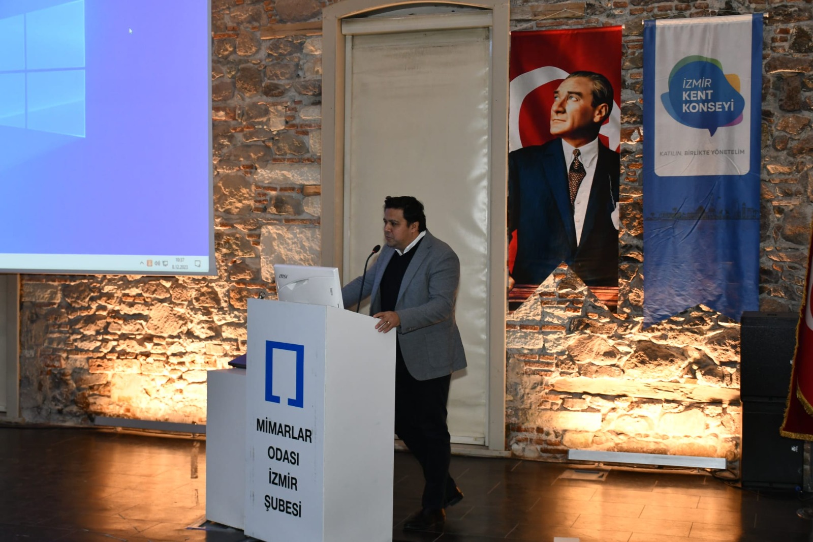 TMMOB Mimarlar Odası İzmir Şubesi Başkanı İlker Kahraman ise Türkiye'de 11 ilimizi etkileyen deprem felaketinin ardından TMMOB olarak bölgede yürüttükleri çalışmaları anlattı. Kentsel dönüşüm yasası ile ilgili görüşlerini dile getiren İlker Kahraman, "Bu toprakların ve insanların bir kentleşme hafızası var. Bu hafızayı harekete geçirmeliyiz" dedi.