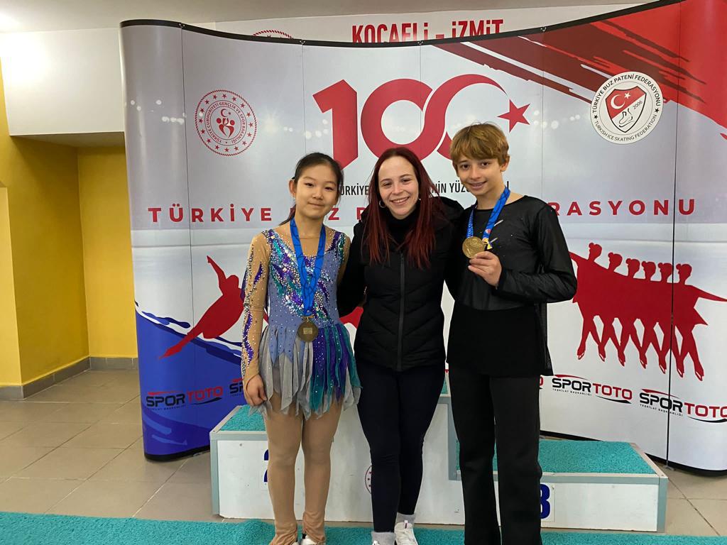 İzmir Büyükşehir Belediyesi Gençlik ve Spor Kulübü’nün artistik buz pateni sporcuları Kocaeli’de düzenlenen Türkiye Buz Pateni Şampiyonası’ndan madalyalarla döndü. Kocaeli Olimpik Buz Sporları Salonu’nda 15-17 Aralık tarihlerinde düzenlenen organizasyona, 19 kulüp ve 2 ferdi bölgeden olmak üzere toplam 87 sporcu katıldı.