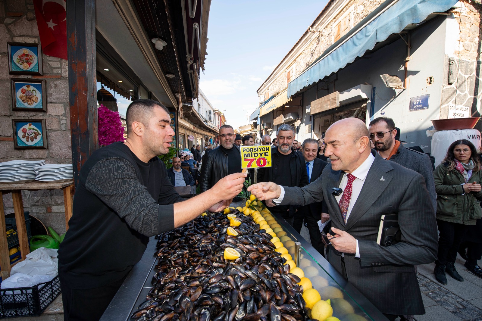 Başkan Soyer, saha mesaisi esnasında bir esnafın ikram ettiği midyenin tadına baktı. Soyer, ayrıca Milli Piyango büfesinden de yeni yıl çekilişi için bilet aldı. İzmirliler Halkın Kasabı dükkânına giren ve alışveriş yapan Başkan Soyer’e olan desteklerini yüksek sesle dile getirdiler.
