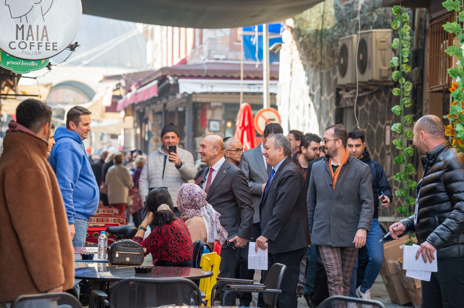 Başkan Soyer yeni yüzyılına hazırlanan tarihi çarşıdaki çalışmaları inceledi