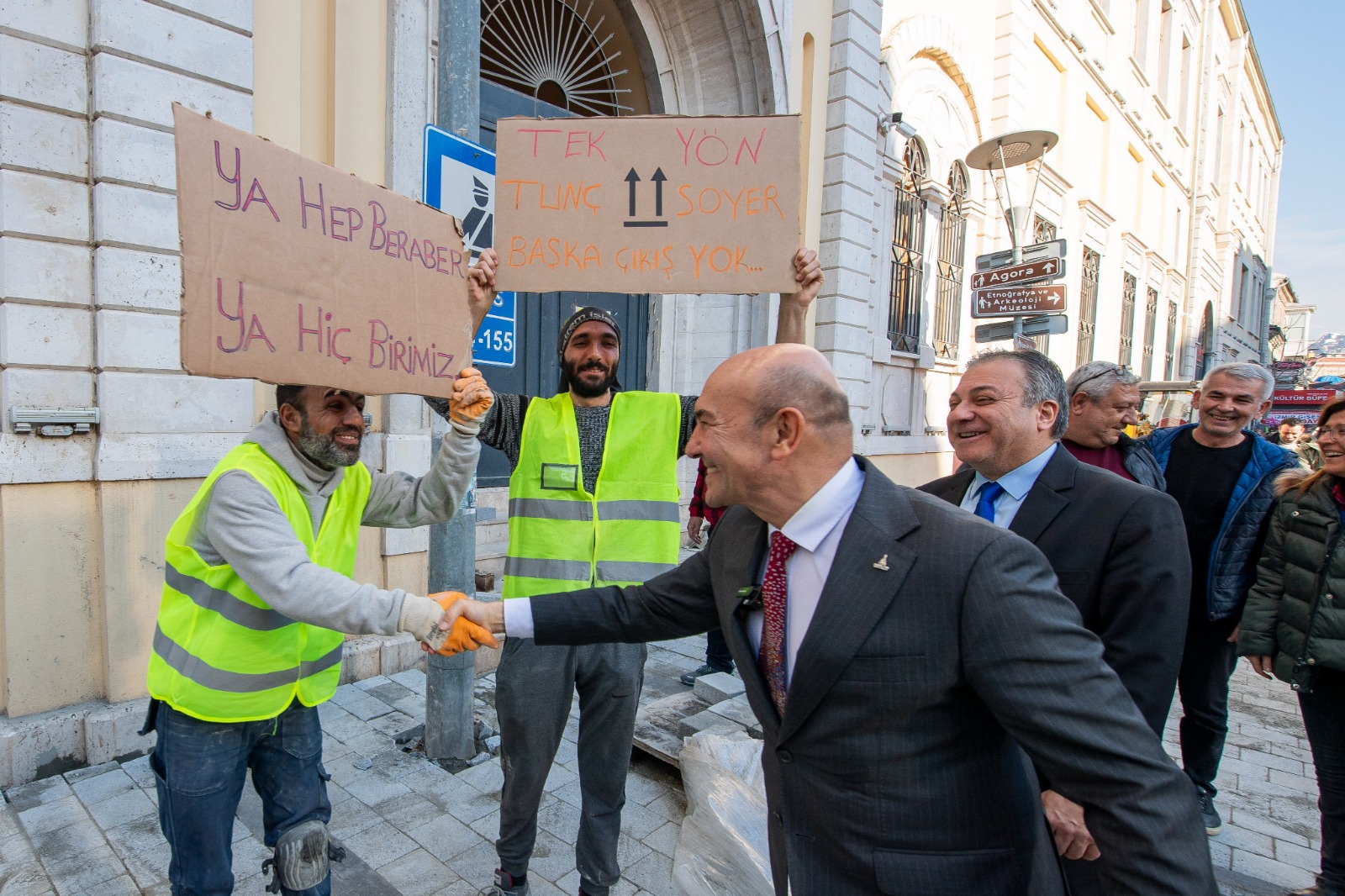 Dükkanının önünde yürütülen çalışmalardan övgüyle söz eden esnaf Hafzullah Daşdemir, Başkan Soyer’e teşekkür etti. Esnaf Mehmet Acar ise “Sizden çok memnunuz, inşallah bir daha sizi seçeriz” dedi. Kemeraltı esnafı Erhan Genyüz de “Sizi tekrar görmek istiyoruz. İthalini de yerlisini de istemiyoruz” diye konuştu.