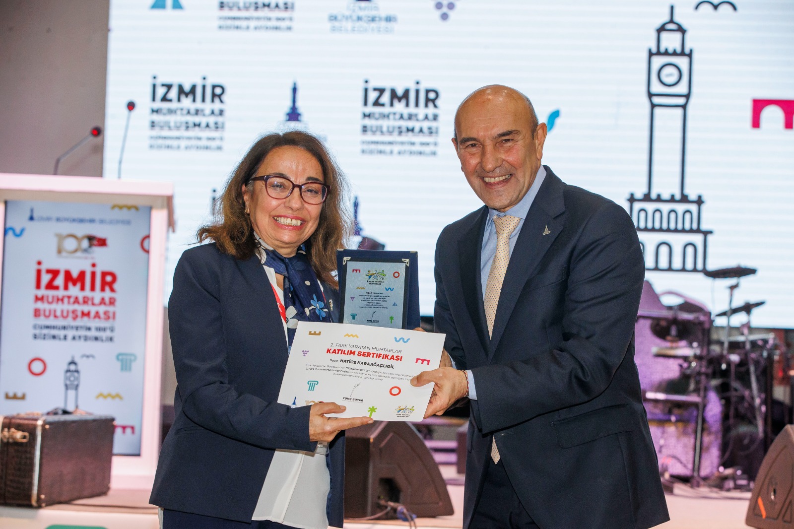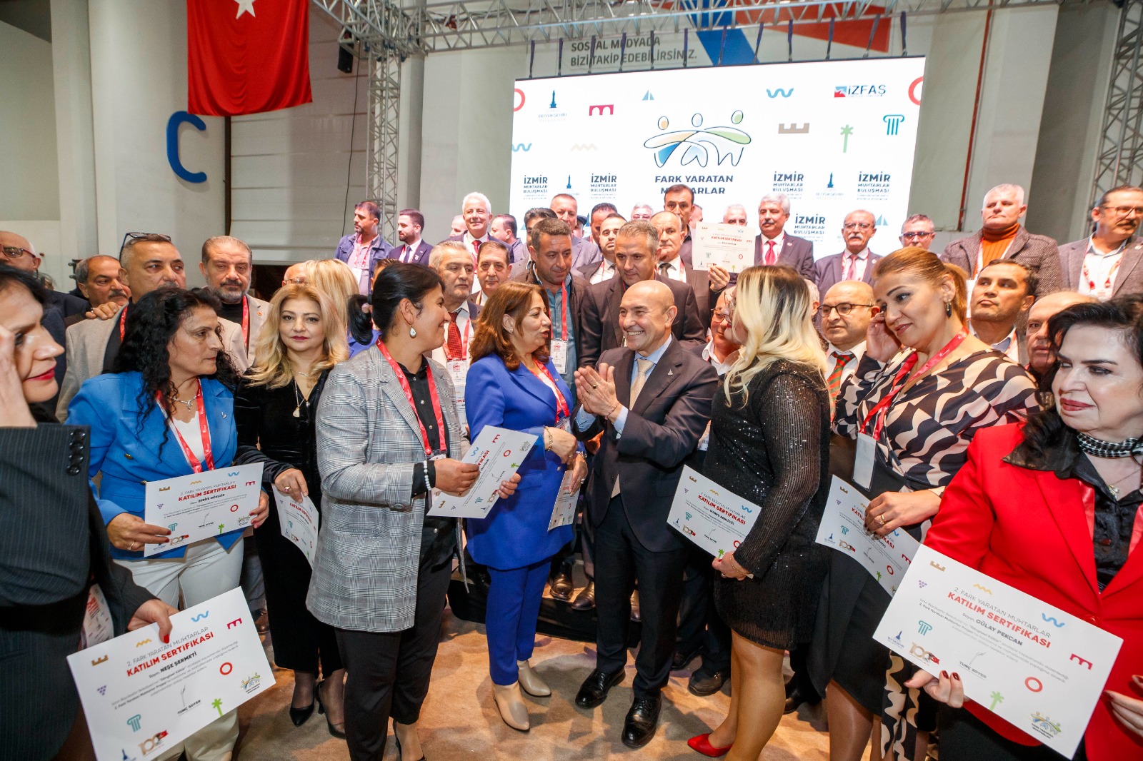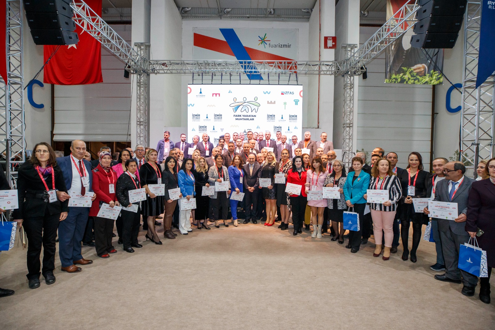 İzmir Büyükşehir Belediyesi'nin kentin mahallelerini uyumlu, içten, neşeli ve bereketli bir hayatla buluşturmak için düzenlediği “Fark Yaratan Muhtarlar” ödüllerinin sahipleri açıklandı. Fuar İzmir’deki ödül törenine İzmir Büyükşehir Belediye Başkanı Tunç Soyer, Beydağ Belediye Başkanı Feridun Yılmazlar, Ardahan Belediye Başkanı Faruk Demir, İzmir Büyükşehir Belediyesi Genel Sekreteri Barış Karcı, İzmir Büyükşehir Belediyesi Genel Sekreter Yardımcıları Şükran Nurlu, Ertuğrul Tugay, Suphi Şahin, İzmir Büyükşehir Belediyesi bürokratları, kentin çeşitli ilçelerinden bin 200’ü aşkın muhtar, sivil toplum kuruluşları, odalar ile derneklerin başkanları ve temsilcileri katıldı.