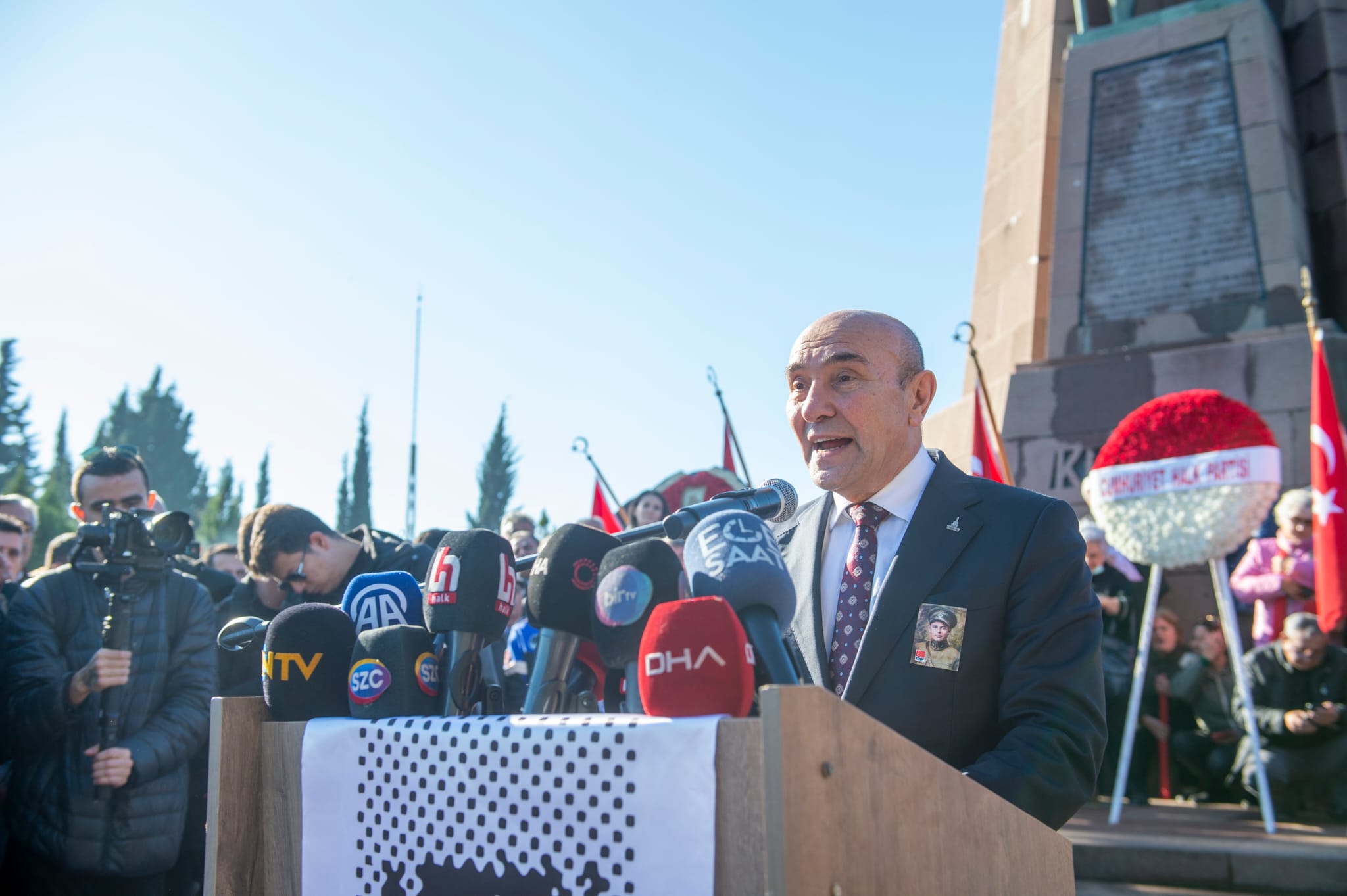 Başkan Soyer ayrıca, “Milyonlarca Kubilay, milyonlarca Hasan, milyonlarca Şevki Cumhuriyet devrimlerinin başında ilk günkü gibi canla başka nöbet tutuyoruz, tutmaya devam edeceğiz. Bizler, sen başla bitiren bulunur diyen Hasan Tahsin'in evlatlarıyız. Siyasi İslamcılıkla toplum mühendisliği yapılmasına, dini referanslar ile eğitim sisteminin şekillendirilmesine, bu ülkenin aydınlık yüzü, ilerici ve devrimci şehri İzmir asla geçit vermez. Bizi bu yoldan kimse döndüremez. Cumhuriyetin devrimlerine kimse göz dikemez. 100 yıldır Cumhuriyet nesilleri yetiştiren eğitim yuvalarına, okullarımıza sonuna kadar sahip çıkacağız. Ulu Önderimizin “en büyük eserim” dediği Cumhuriyetimize sahip çıkmak istiyorsak şu üç şeye her zamankinden daha çok ihtiyacımız var. Cesarete, bir arada olmaya ve umuda. Biliyorum ki bizler bu üç erdeme de sahibiz. Bugün burada Cumhuriyet’in devrimlerini hazmedemeyen halk düşmanlarına karşı, Cumhuriyetimizin 100'üncü yılında o devrimleri ölümsüzleştireceğimize bir kere daha ant içiyoruz. 93 yıl önce bugün, Cumhuriyet Şehitlerimiz, bir avuç hain karşısında nasıl dimdik durduysa, biz de bu karanlığın karşısında öyle dimdik duracağız. Özgürlüğümüze, demokrasiye, barışa ve adalete zarar vermeye çalışanlara asla geçit yok. Okullarımızı tarikatlara açmaya çalışan karanlık zihniyete asla izin vermeyeceğiz. Biz Mustafa Kemal’in İzmir’iyiz. Cumhuriyet devrimlerinin ebedi bekçileriyiz. Şimdi sıra bizde. Yaşasın demokrasi. Daima laiklik. Daima Cumhuriyet” ifadelerini kullandı.