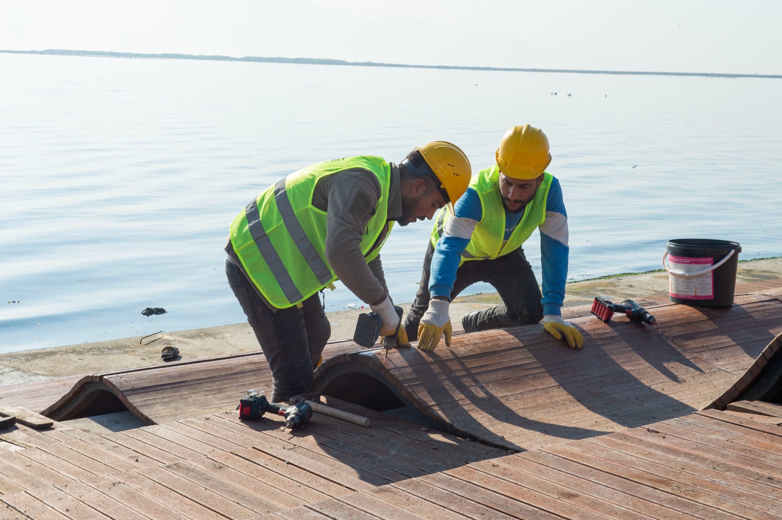 İzmir Büyükşehir Belediye Başkanı Tunç Soyer, Yaşayan Parklar projesi kapsamında Mavişehir’de yapımı sürdürülen ve 2024 yılının ilk çeyreğine kadar açılması planlanan Flamingo Doğa Parkı’ndaki çalışmaları inceledi. 100 milyon liranın üzerinde bir maliyetle kente kazandırılacak park hakkında konuşan Başkan Soyer, “Diliyorum İzmirliler bunun keyfini sürecekler ve yaptığımız ahşap deniz teraslarında İzmir’in güzelliğini keşfedecekler” dedi.