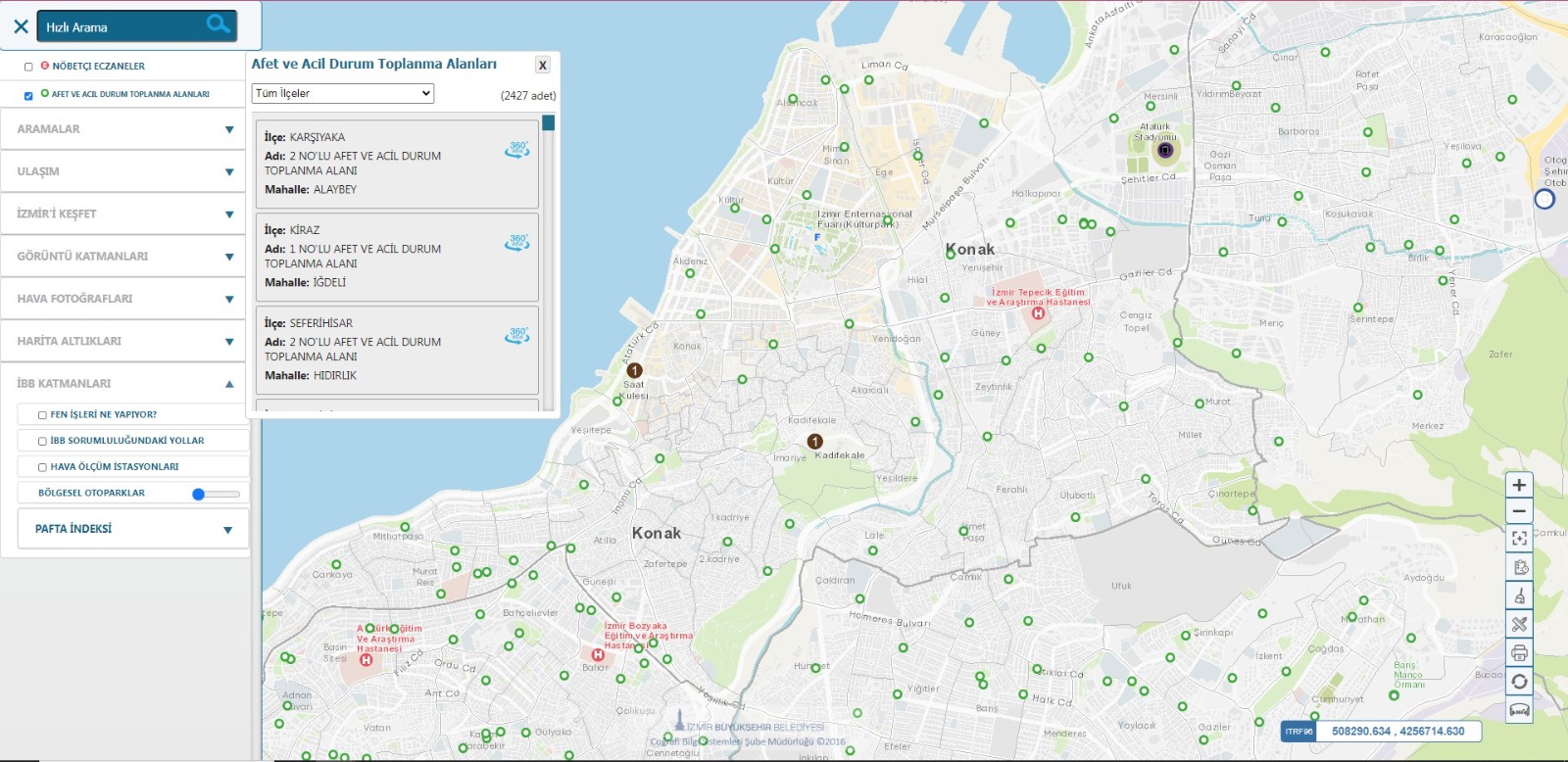 Sürekli güncellenen, Kent Rehberine https://kentrehberi.izmir.bel.tr/izmirkentrehberi adresinden ulaşılabilir.