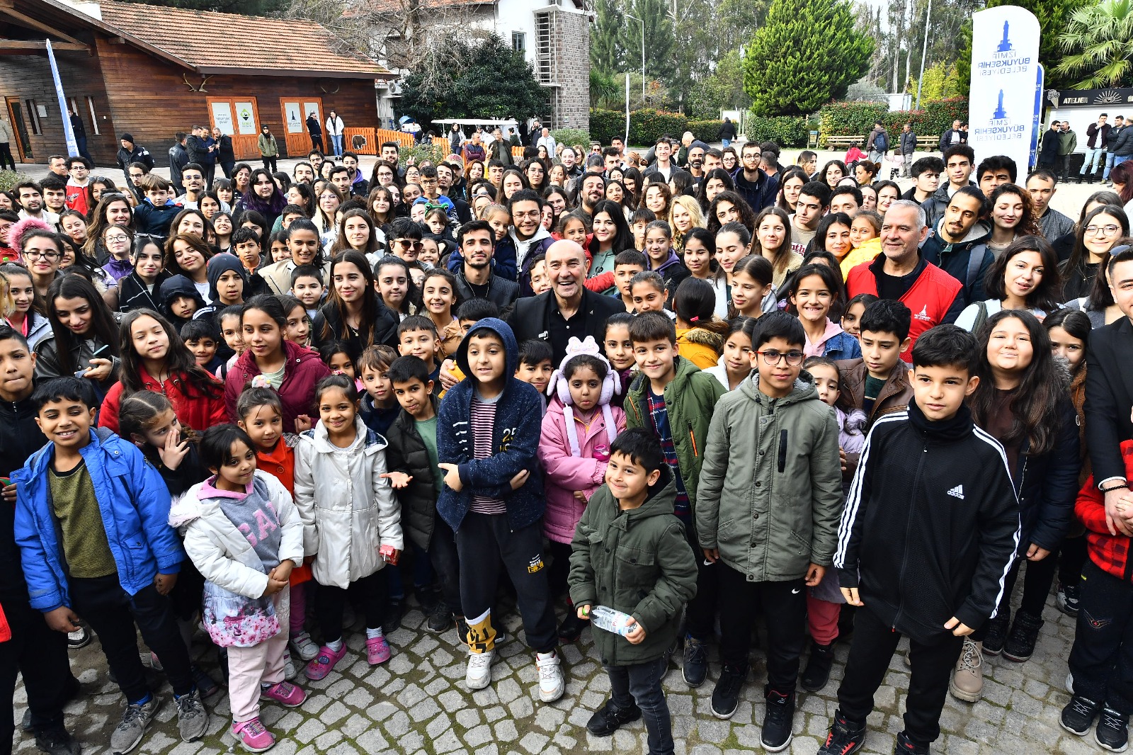 Etkinlik alanında projede gönüllü olarak yer alan gençlere seslenen Başkan Soyer, “Hepinizi sevgiyle kucaklıyorum. İçim içime sığmıyor. Böyle güler yüzlerin bu kadar anlamlı bir projede bir araya gelmesi çok kıymetli. Gönüllü gençlerimizi kutluyor ve her birine ayrı ayrı teşekkür ediyorum. Yaşadıkları coğrafyaya, yaşadıkları mahalleye nasıl katkı veririz diye kendi zamanlarından fedakârlık ediyorlar. Çocukları geleceğe hazırlamaya çalışıyorlar. Sizlere minnettarım. Evlatlarımızı, bu küçücük yürekleri mutlu ediyorsunuz. Bu ölçülemez bir şey. Onların hayatında çok değerli unutulmaz izler bırakıyorsunuz. O yüzden dilerim daha çok arkadaşınızı bu projeye dahil edersiniz, daha çok çocuğun hayatına dokunursunuz” diye konuştu.