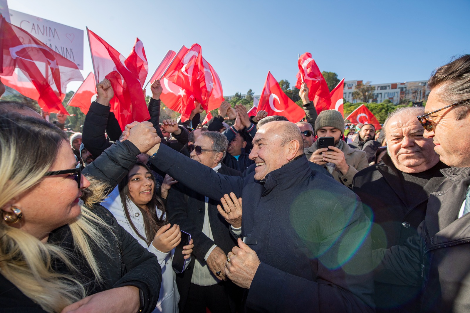 5 yıl boyunca İzmirlilerin geleceği için çalıştıklarını söyleyen Başkan Tunç Soyer, “Beş yıl boyunca sadece İzmir için, bu güzelim kentte yaşayan tüm hemşehrilerim için canla başla, aşkla çalıştım. 4.5 milyon İzmirlinin geleceğinin, hayallerinin çalınmaması için mücadele ettim. Bir yandan geçmişin halı altına süpürülmüş tüm meselelerini çözmeye, bir yandan da bu şehri ganimet olarak görenlerin oyunlarını bozmaya gayret ettim. Çünkü biz gücümüzü güzel İzmir’imizin temiz kalpli insanlarından alıyoruz. Mustafa Kemal Atatürk’ün çizdiği yolda yürüyoruz. İzmir daima kendi kaderini belirleyen, kendi sesini yükselten, çok renk, çok ses, çok nefesle zenginleşen, demokrasinin en kuvvetli kalesidir. Bu şehir, kendi gücüyle yükselmeye, kendi halkının direnciyle ayakta kalmaya devam edecektir. İlk sözümüz de, son sözümüz de, son nefesimiz de İzmir!” dedi.