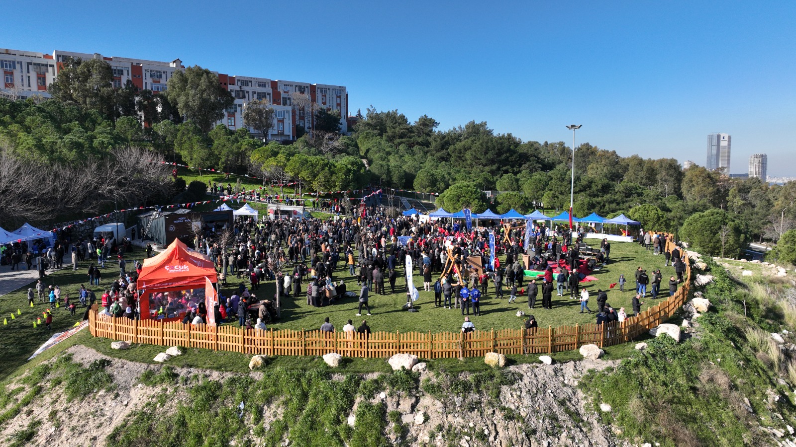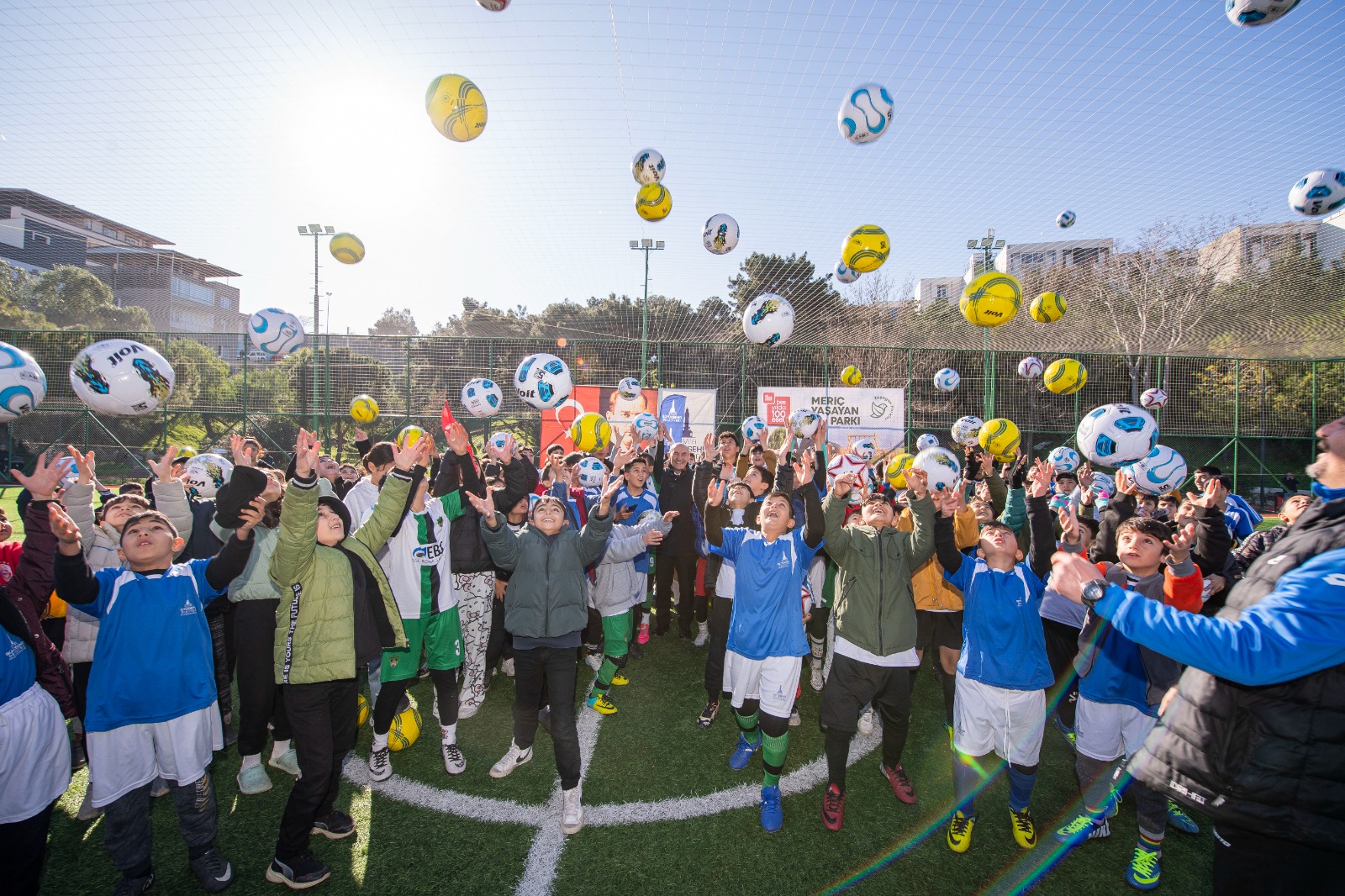 İzmir Büyükşehir Belediye Başkanı Tunç Soyer’in “Yeşil Altyapı” vizyonunun parçası olan Yaşayan Parkların altıncısı Bornova’da açıldı. İzmir Büyükşehir Belediyesi Başkanı Tunç Soyer’in ev sahipliğiyle açılan 60 bin metrekarelik Meriç Yaşayan Parkı, bölgede yaşayanlardan yoğun ilgi gördü. “İzmir seninle gurur duyuyor”, “İzmir Tunç'tur Tunç kalacak” sloganlarıyla karşılanan Başkan Tunç Soyer, parkın içinde yapılan futbol sahasında bunun yapılmasını talep eden Berat ile buluştu. Çocuklarla da bir araya gelen Başkan Soyer, burada ilk vuruşu yaptı. Bornova MTK-Moda Tekstil Konfeksiyoncular sitesinin yanında bulunan parkın açılışında özellikle çocuklar için birçok renkli etkinlik düzenlendi.