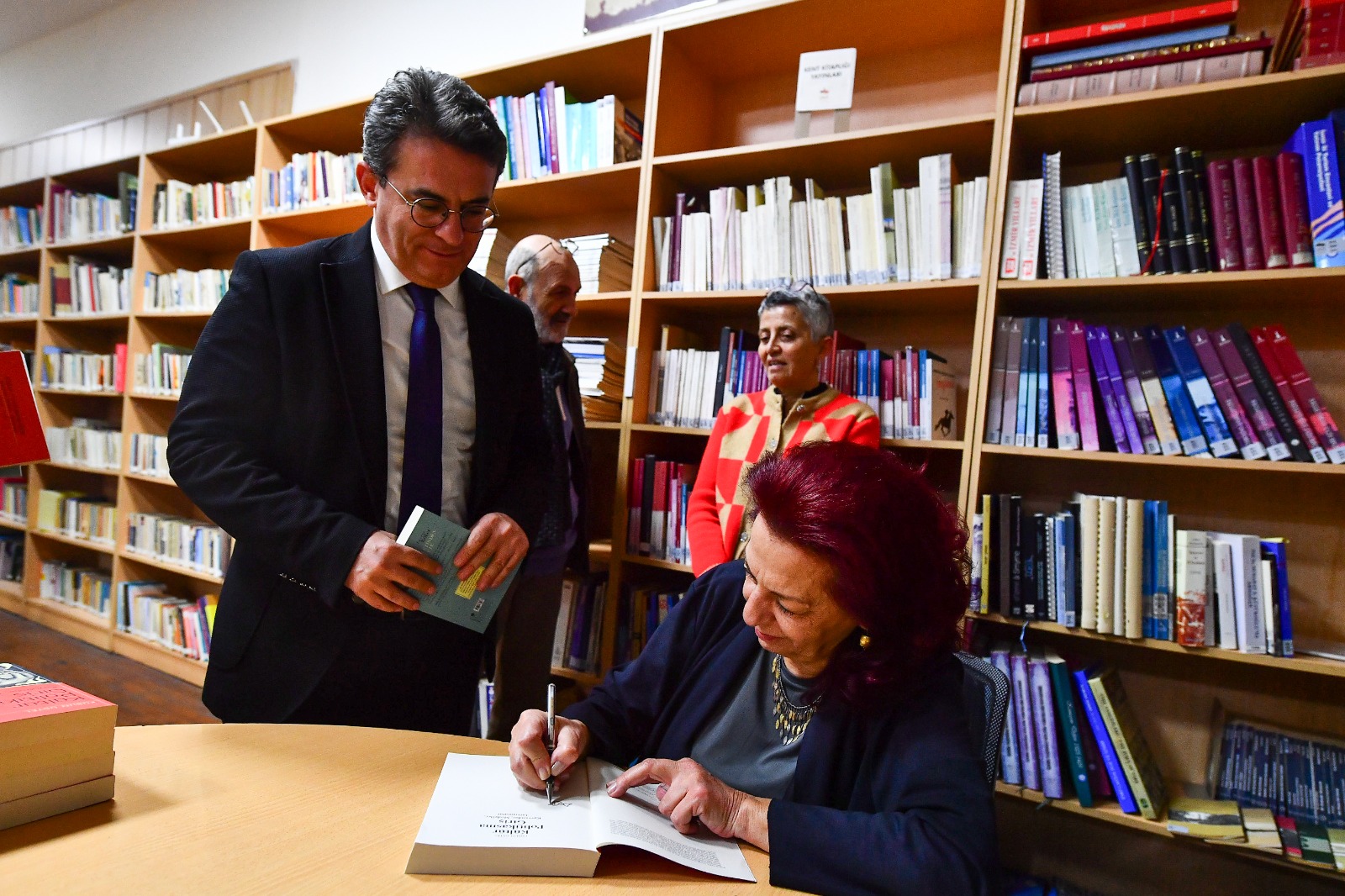 Söyleşinin ardından Köker ve Üstel’e plaketleri İzmir Büyükşehir Belediyesi Başkan Vekili Aydın tarafından takdim edildi. Aydın ayrıca Köker ve Üstel’in kaleme aldığı kitapları alarak imzalattı.