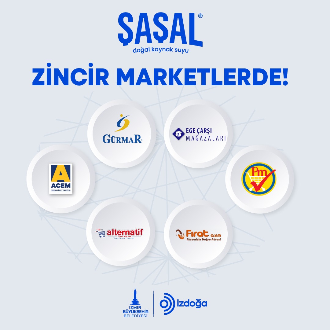 İzmir Büyükşehir Belediyesi şirketlerinden İzDoğa’nın çalışmalarıyla tekrar üretilmeye başlanan asırlık Cumhuriyet markası Şaşal Su, çok yakında raflarda olacak. Şaşal Su’yun satışı için ilk etapta 6 zincir market ile anlaşıldı. El sıkışılan ilk marketler arasında Gürmar, Ege Çarşı Mağazaları, Acem Market, Fırat AVM, Alternatif Marketler ve Promosyon Marketleri yer alıyor. Ayrıca Şaşal Su için bayilik ve satış noktası olma başvuruları da başladı.