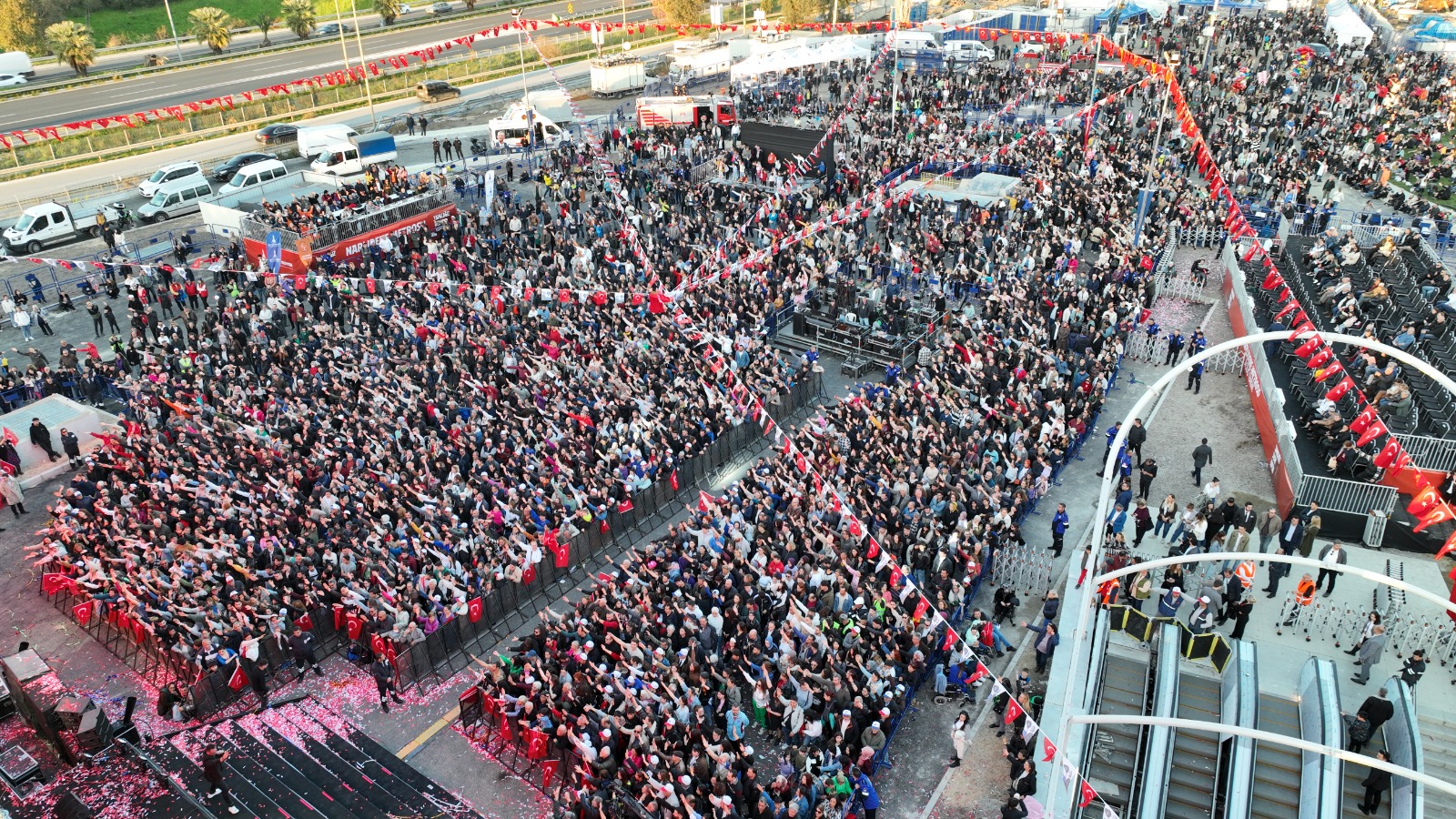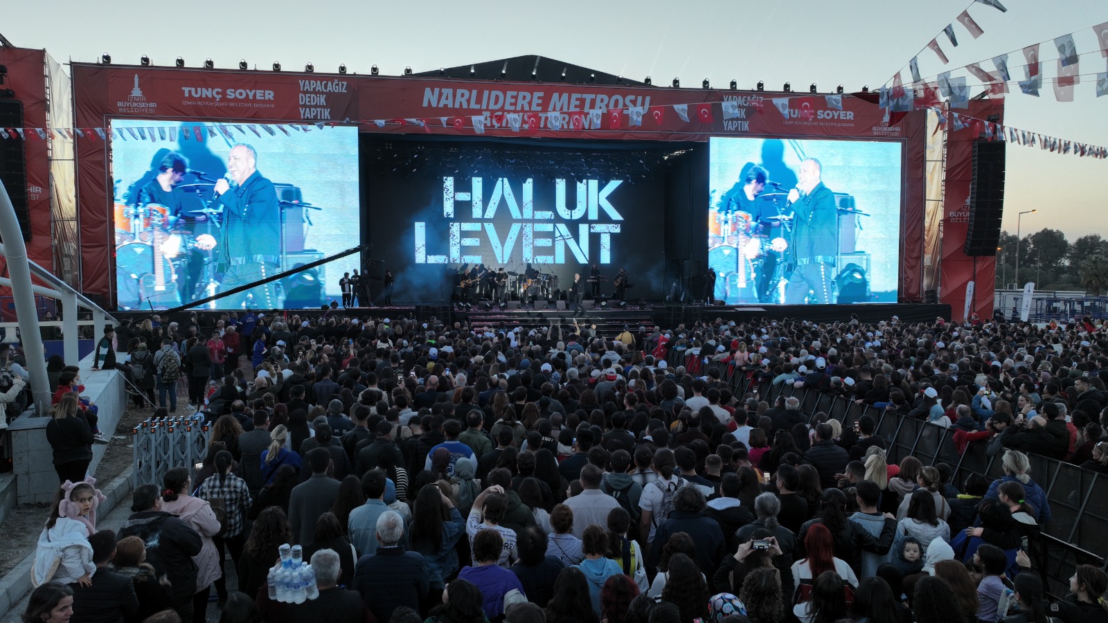 İzmir Büyükşehir Belediyesi'nin 287 milyon euro yatırımla tamamladığı Fahrettin Altay-Narlıdere Metrosu’nun görkemli açılışının ardından coşku DJ Ersin ve ardından sevilen sanatçı Haluk Levent konseriyle tavan yaptı. Alanda toplanan binlerce İzmirli şarkılara hep bir ağızdan eşlik etti.