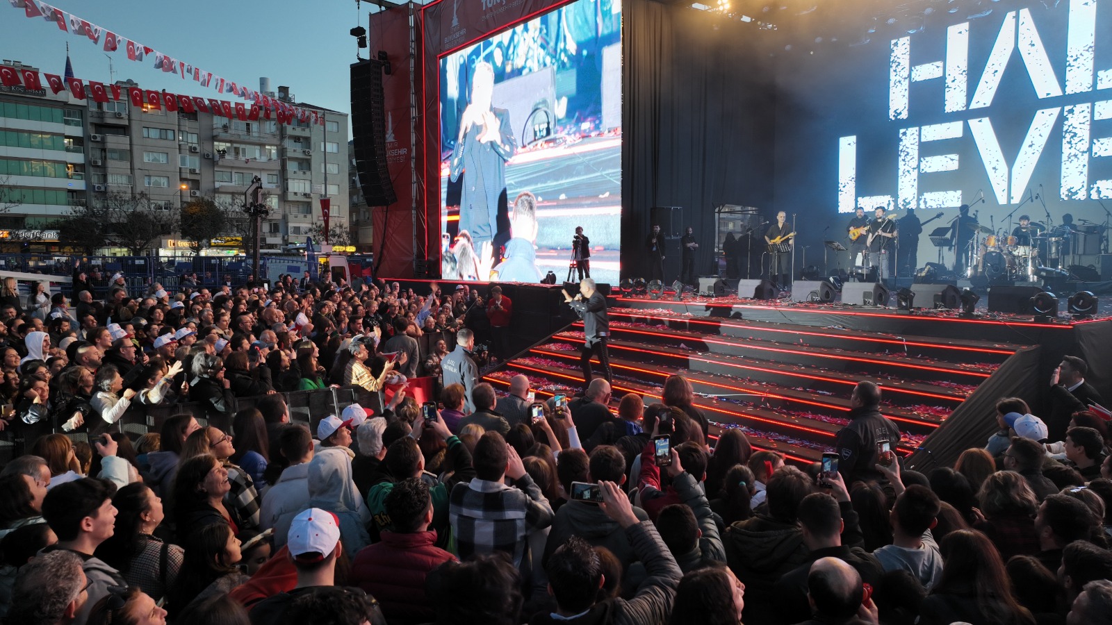 DJ Ersin, sahne şovlarıyla alanda toplanan binlerce İzmirliye keyifli anlar yaşattı. Hemen ardından sahneye çıkan sevilen sanatçı Haluk Levent’in konseriyle coşku tavan yaptı. Alanı dolduran İzmirliler Haluk Levent'in şarkılarını hep bir ağızdan söyledi.