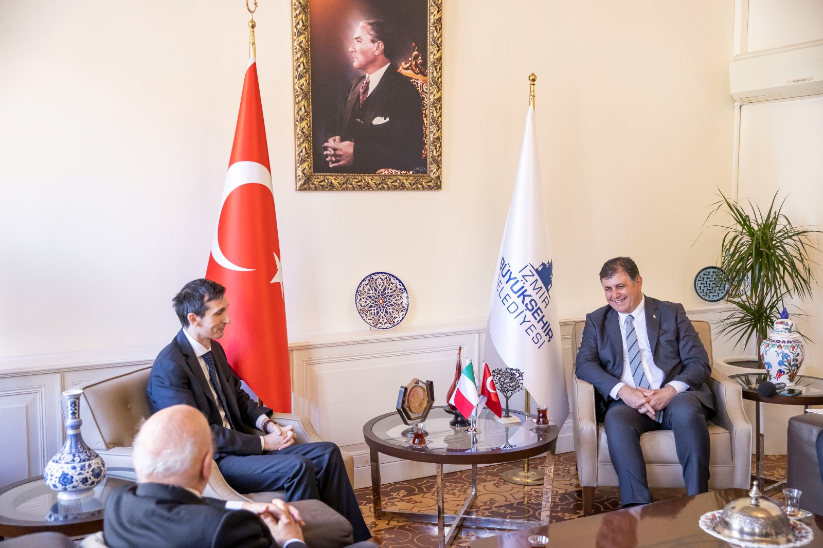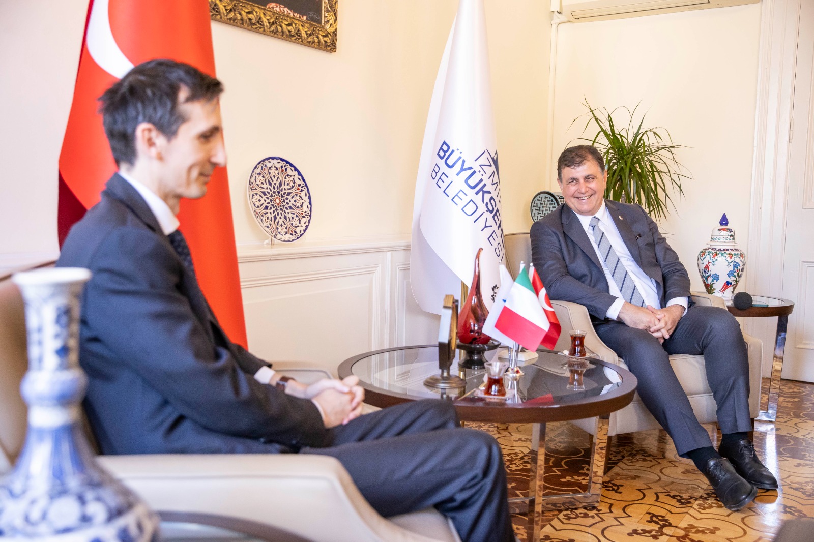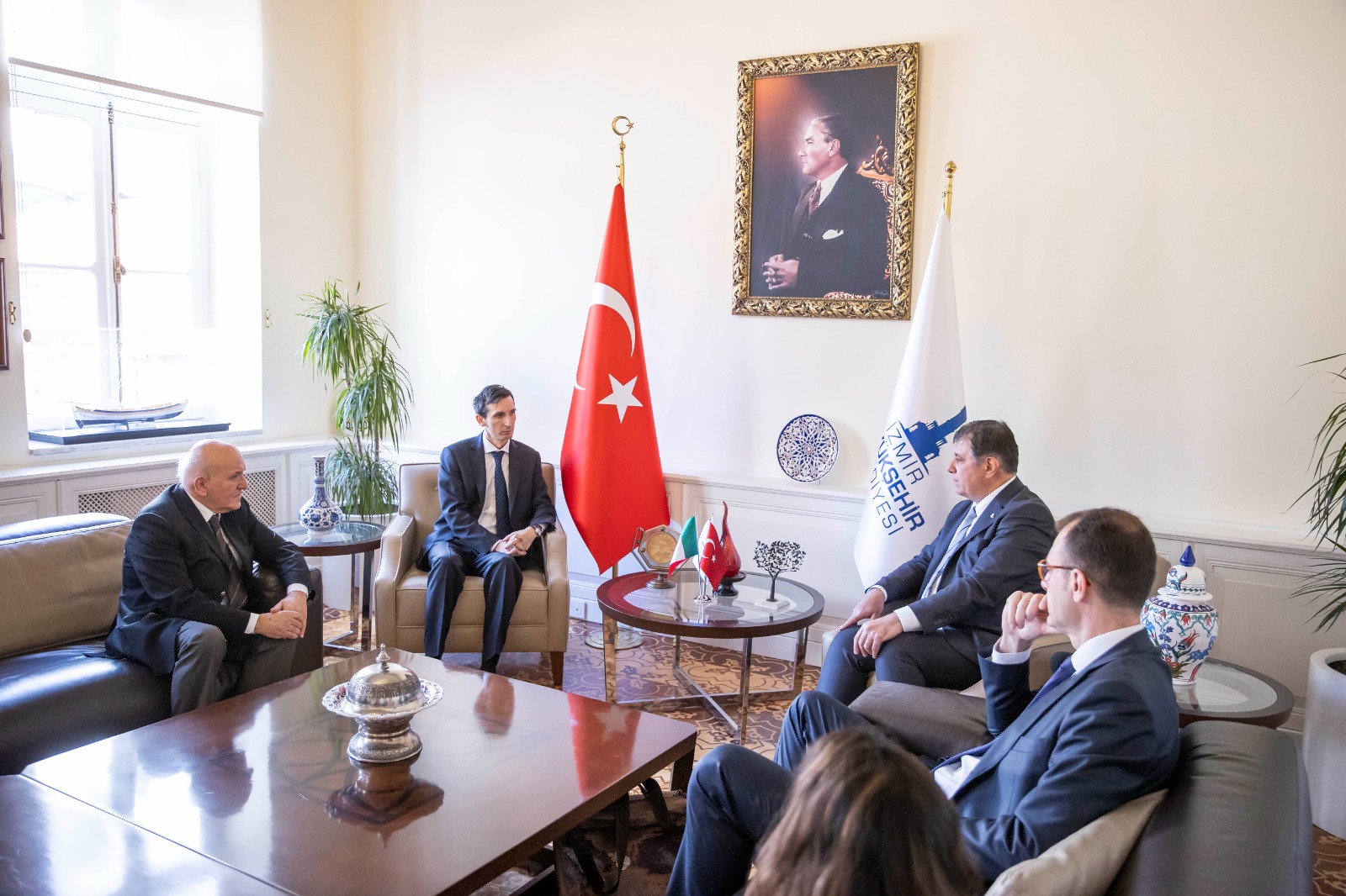 İtalya’nın İzmir Konsolosu Daniele Bianchi’yi misafir eden İzmir Büyükşehir Belediye Başkanı Dr. Cemil Tugay, bu yıl 30 Ağustos-9 Eylül tarihlerinde 93’üncü kez düzenlenecek İzmir Enternasyonal Fuarı’na İtalya’yı “partner ülke” olarak davet etti. Tugay, “İtalya şehirleri ile İzmir arasında sıkı bir iş birliği olsun istiyorum” dedi.