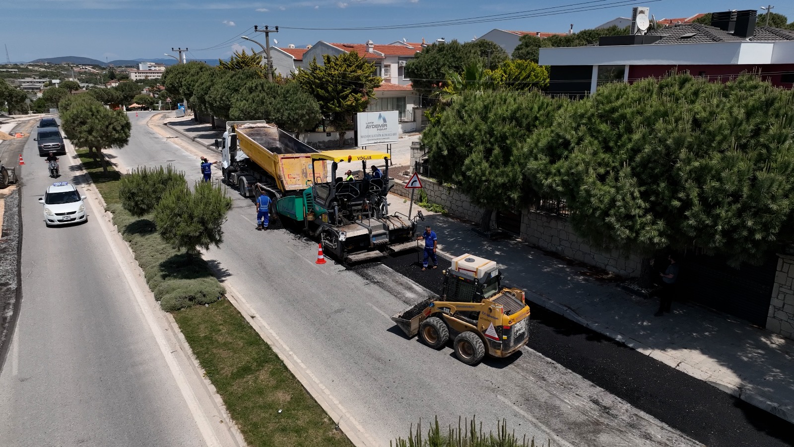 Çeşme'deki çalışmalar ise Dalyan Mahallesi'nde devam ediyor. Toplam 9 kilometrelik bir yol ağını kapsayan bu projede, 4 bin 500 ton sıcak asfalt kullanılması planlanıyor.