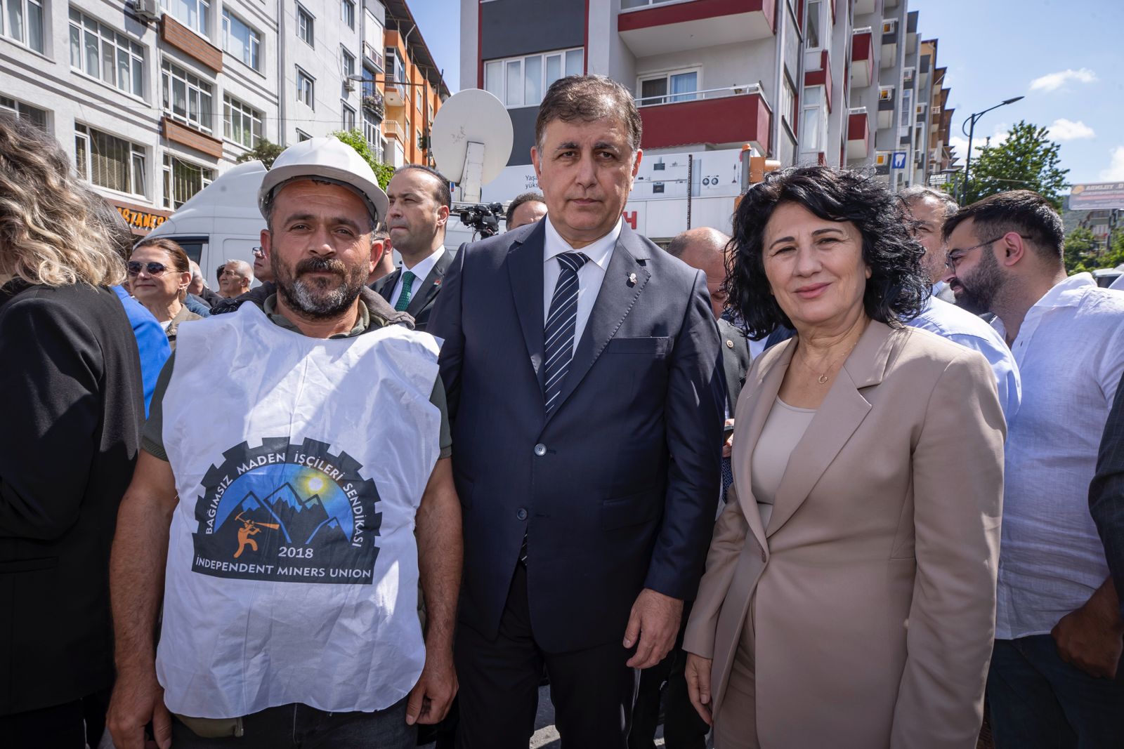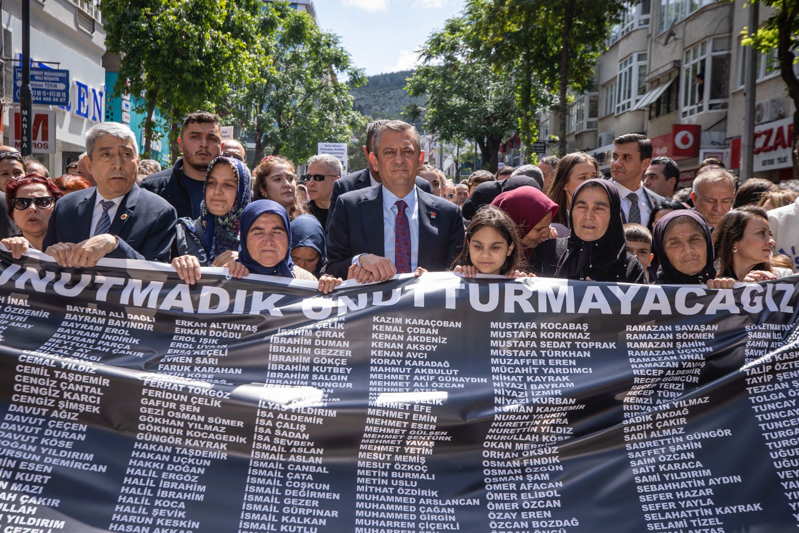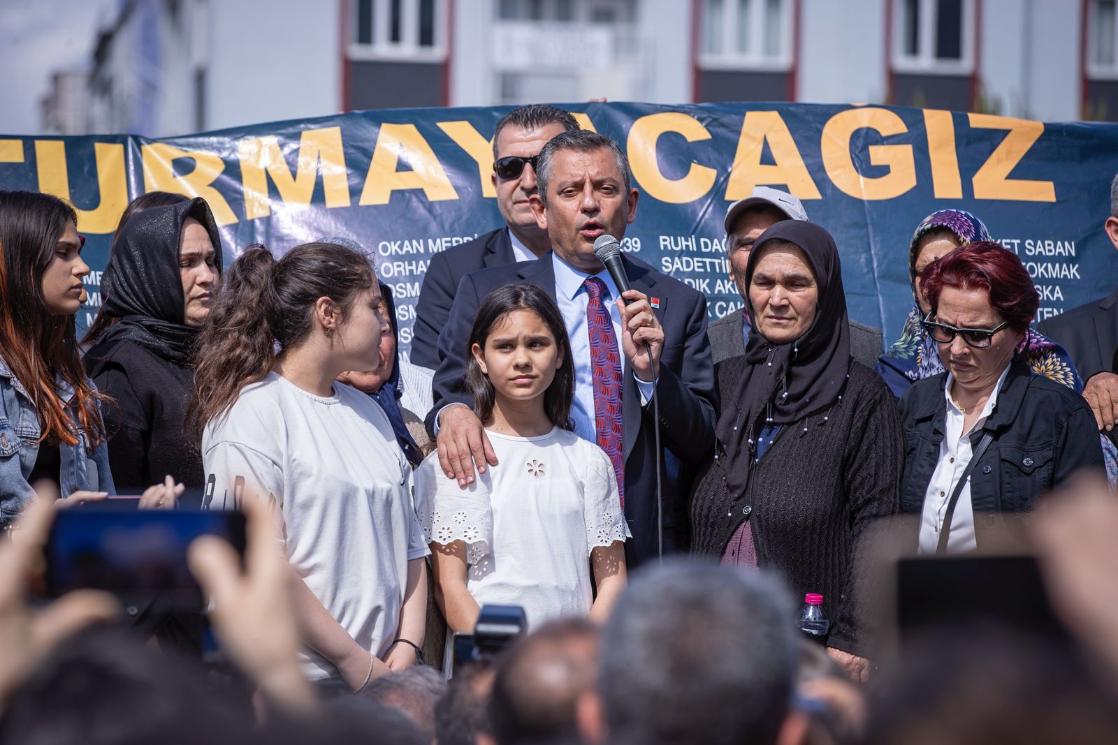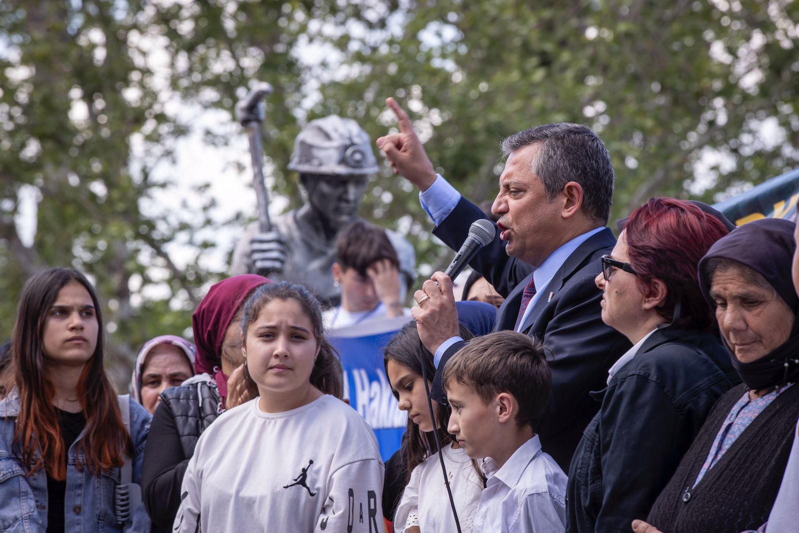 Maden şehitlerinin ailelerini yanına alarak konuşmasını yapan CHP Genel Başkanı Özgür Özel, çıkarılan kanunları eleştirdi. Özgür Özel, “Öyle kanunlar çıkardılar ki kimin tarafında olduklarını gördük. Biz emeğin tarafındayız. Alın terinin tarafındayız. İş sağlığı değil, işçi sağlığı diyenleriz. Biz iş güvenliği değil, işçilerin güvenliği diyenleriz. Biz alın terinin karşılığı alınana kadar, iş cinayetlerinin hepsinin hesabı sorulana kadar ve artık bu ülkede emekçiler iş cinayetlerinde ölmeyene kadar, durduğumuz yerde duracağız. Mücadeleyi sürdüreceğiz” dedi.