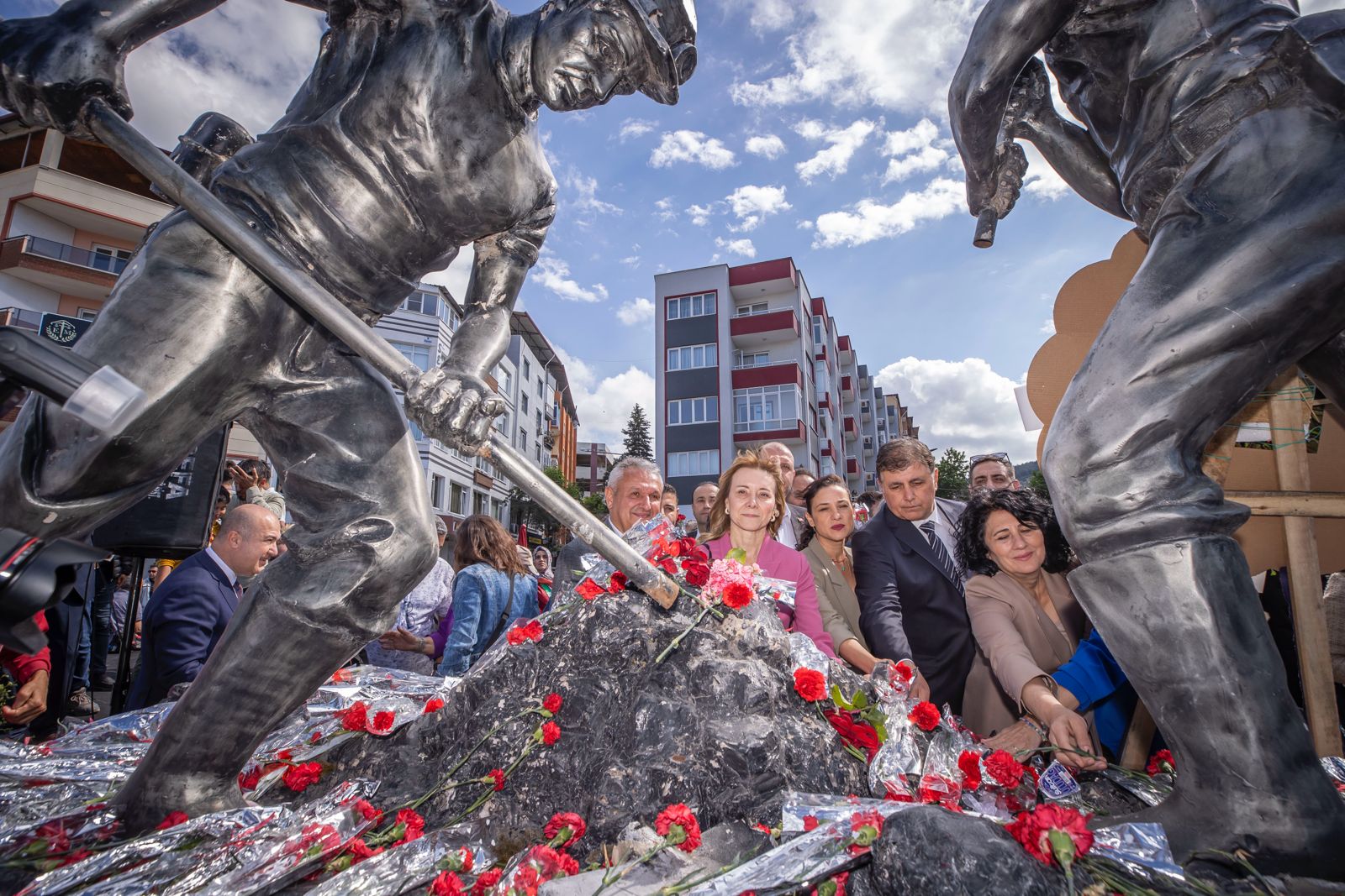 Konuşmaların ardından Madenci Anıtı'na karanfil bırakıldı.