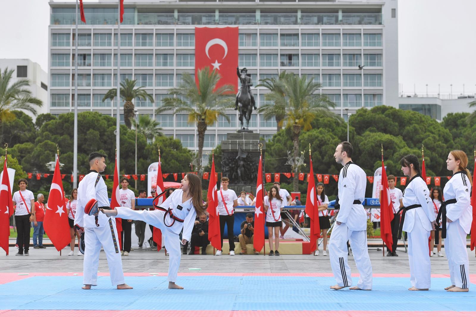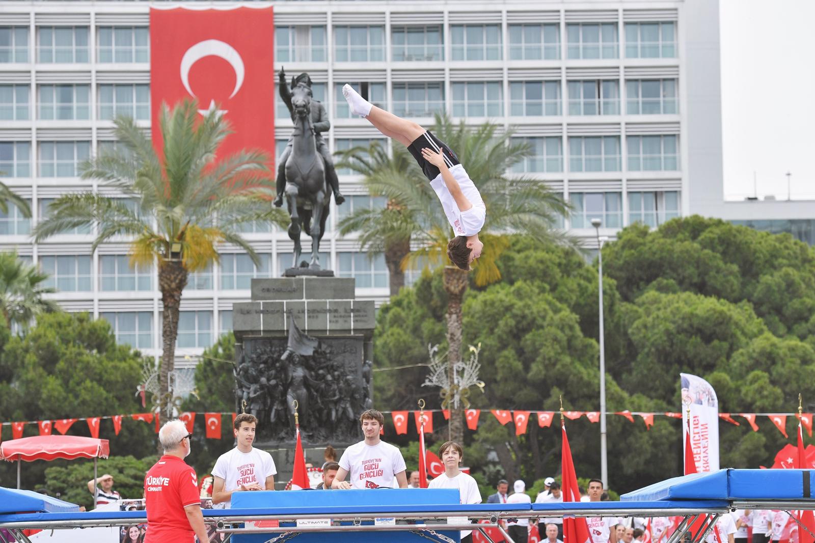 İzmir'de 19 Mayıs Atatürk'ü Anma, Gençlik ve Spor Bayramı kutlamaları Cumhuriyet Meydanı'ndaki resmi törenle başladı. Gençler gösterileri ile izleyenleri büyüledi. Ellerindeki bayraklarla meydanı dolduran yurttaşlar 19 Mayıs coşkusuna ortak oldu.