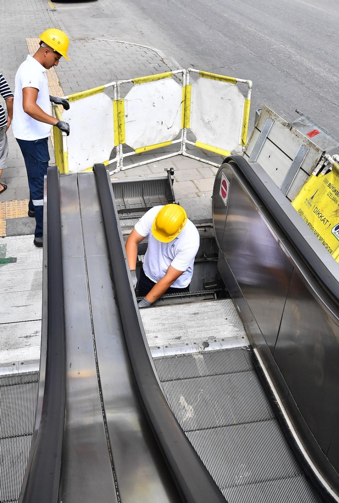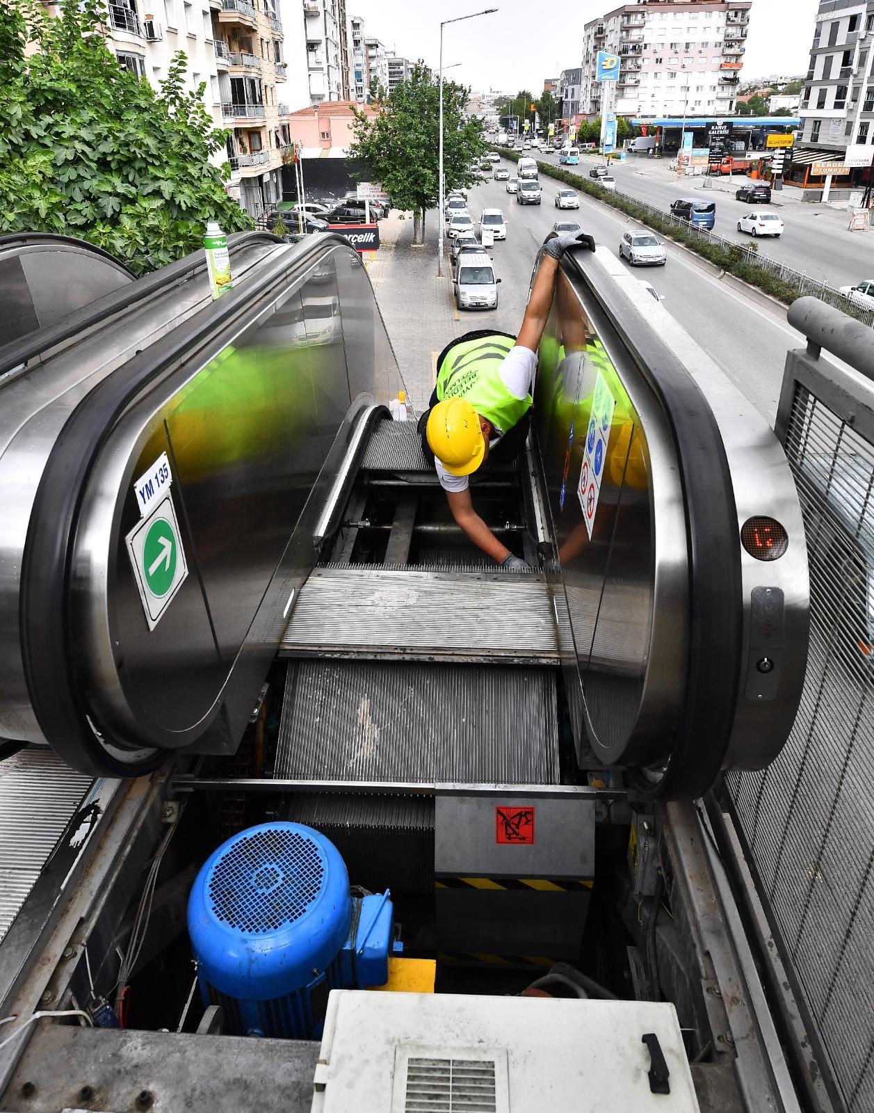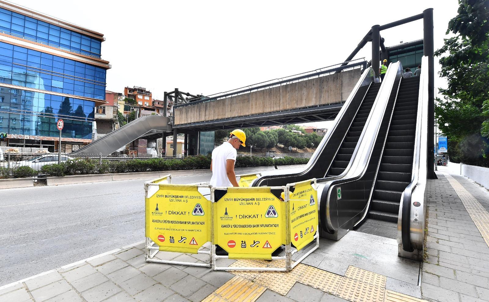 Çalışmalar hakkında bilgi veren İzmir Büyükşehir Belediyesi Yapı İşleri Dairesi Başkanlığı Tesisler Bakım Onarım Şube Müdürü Sezer Vural, “Şuan üst geçitlerimizdeki yürüyen merdivenler ve asansörler yüzde 92 oranında faal durumda. Asansör ve yürüyen merdivenlerimizin tamamını çalışır halde tutmak için haftanın her günü, 24 saat çalışmalarımıza devam edeceğiz” diye konuştu.