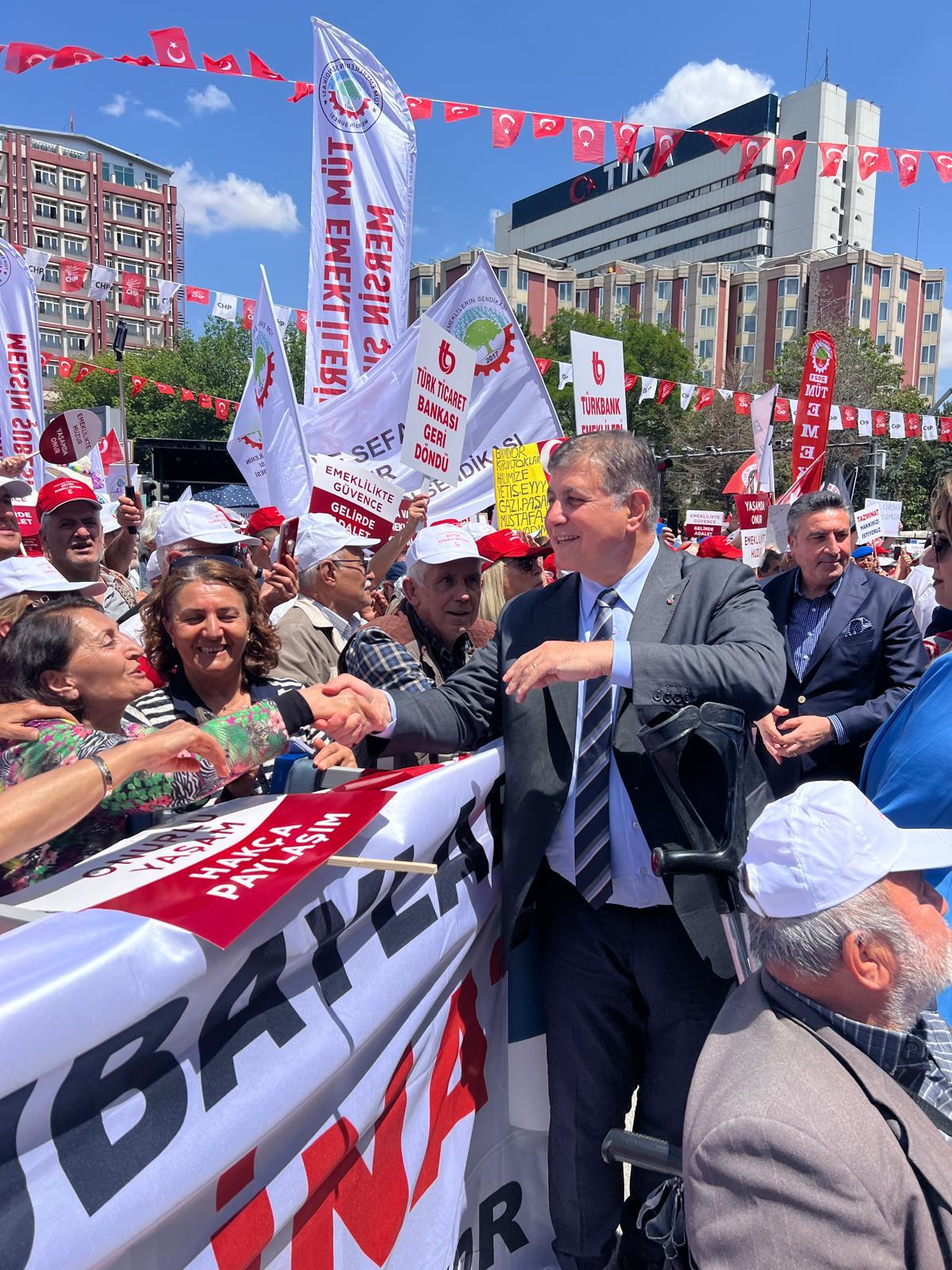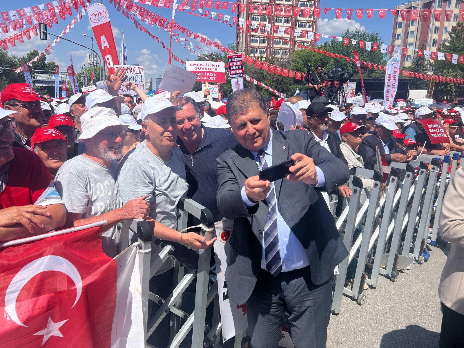 CHP, ‘Büyük Eğitim Mitingi’nin ardından Ankara’da ‘Büyük Emekli Mitingi’ düzenledi. Mitinge katılan İzmir Büyükşehir Belediye Başkanı Dr. Cemil Tugay yurttaşların büyük ilgisiyle karşılaştı.