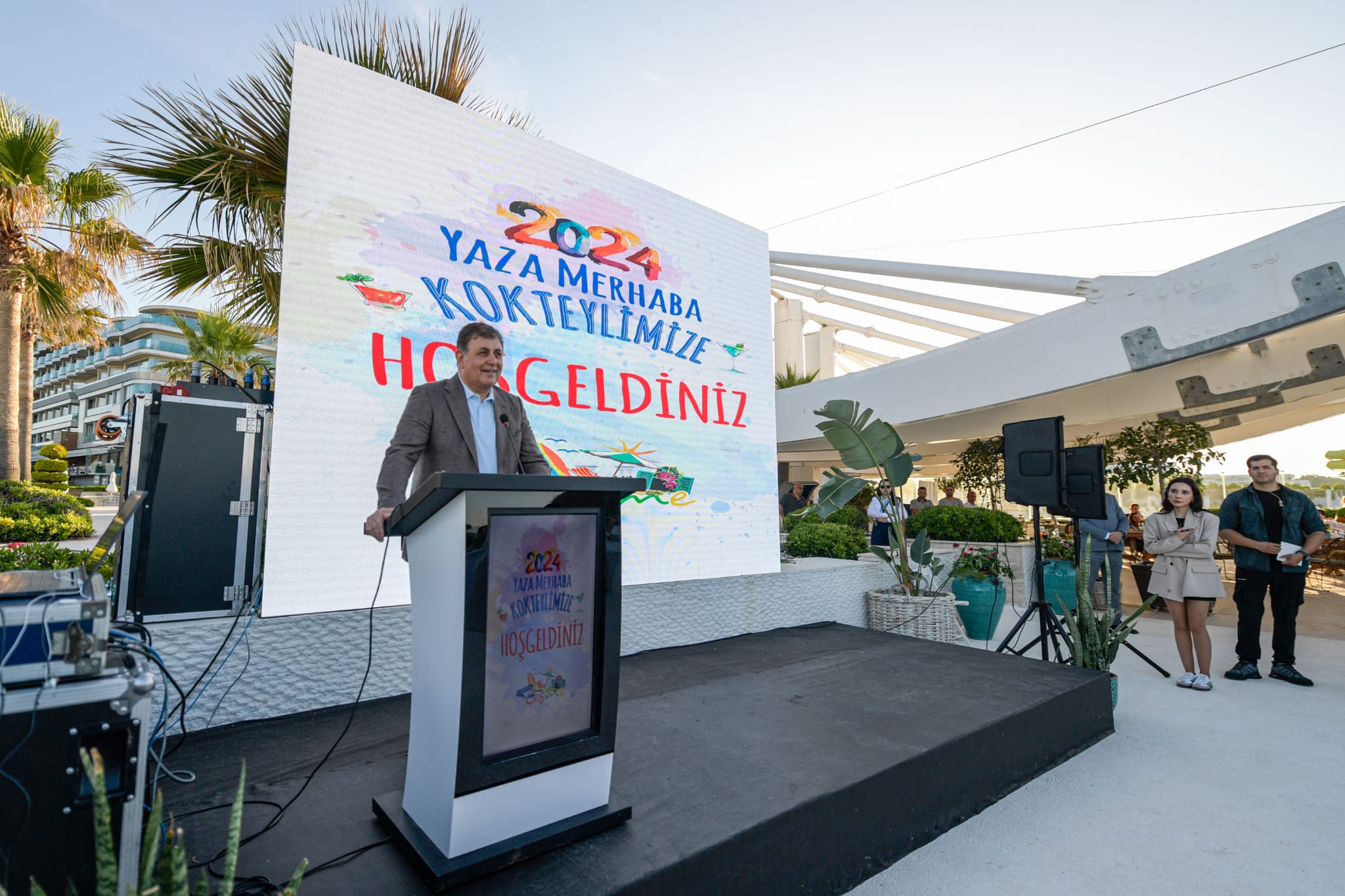 Çeşme Turistik Otelciler ve İşletmeciler Birliği (ÇEŞTOB) tarafından Çeşme’de düzenlenen Yaza Merhaba Kokteyli’nde konuşan İzmir Büyükşehir Belediye Başkanı Dr. Cemil Tugay, “Önümüzdeki 10 yılda, 20 yılda, 50 yılda ve belki 100 yılda, bizim göremeyeceğimiz zaman diliminde de çocuklarımızın, torunlarımızın yaşayacağı Çeşme’yi hayal ederek adım atmamız gerektiğini düşünüyorum” dedi.