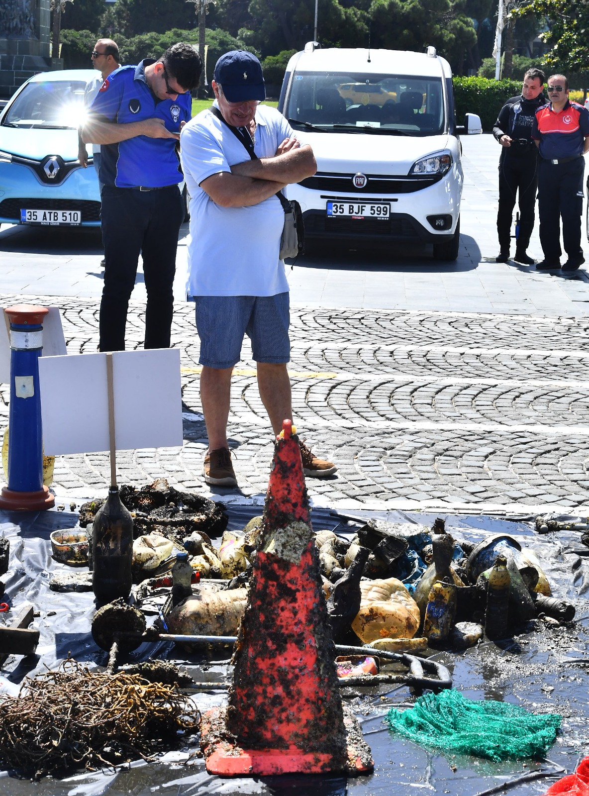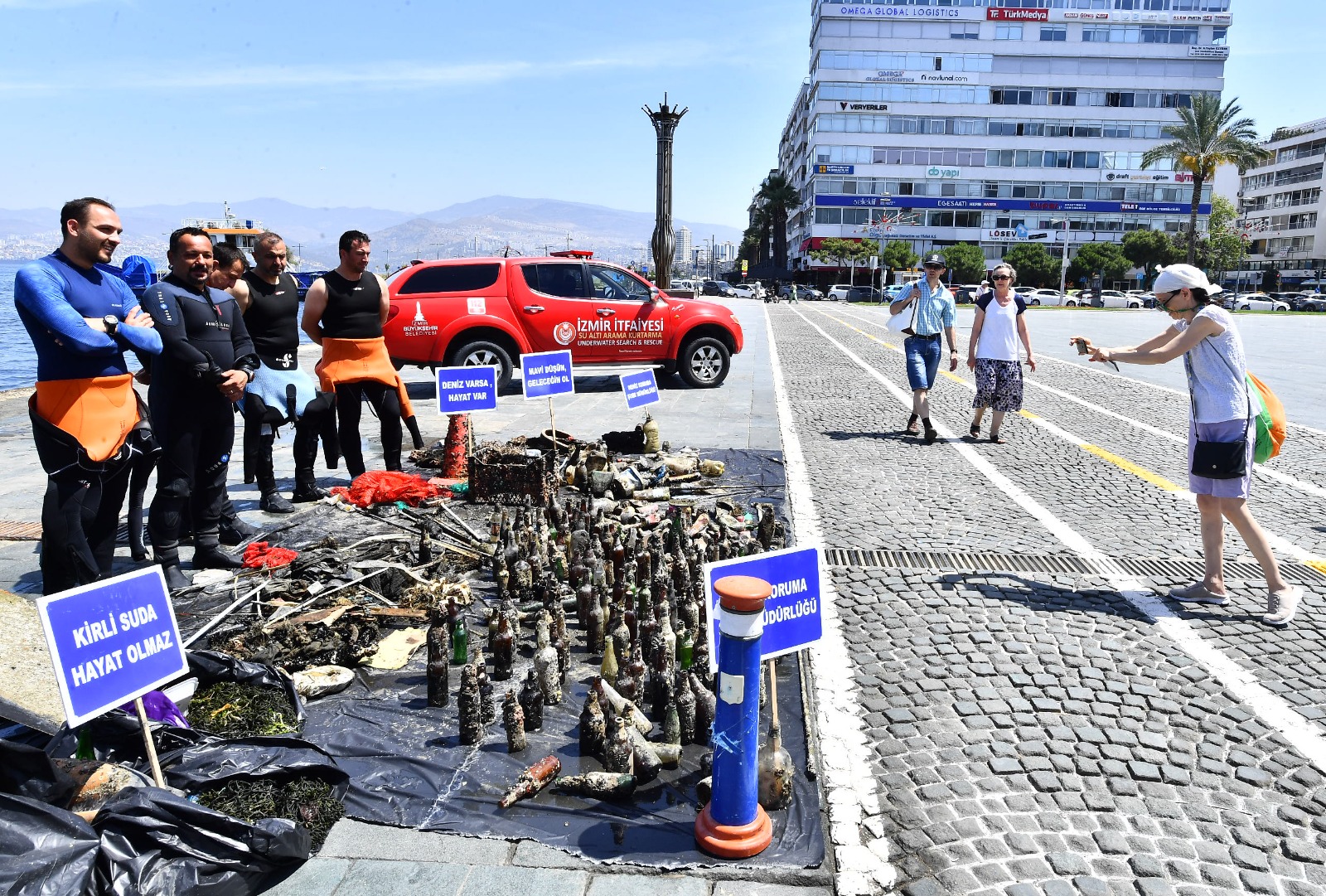 İzmir Büyükşehir Belediyesi’nin 5 Haziran Dünya Çevre Günü nedeniyle çevre bilincini artırmak ve farkındalık yaratmak amacıyla düzenlediği 3-7 Haziran tarihleri arasını kapsayan etkinlikler başladı. İtfaiye Dairesi Başkanlığı Su Altı Arama Kurtarma birimi ile Çevre Koruma ve Kontrol Dairesi Başkanlığı ekipleri “Beraber Temizliyoruz” sloganıyla Körfez’in Cumhuriyet Meydanı ile Pasaport İskelesi arasında temizlik yaptı. Su Altı Arama Kurtarma ekibinden 6 dalgıcın yaklaşık bir saat süren dip temizliğinden Körfez’den çok sayıda cam ve plastik şişenin yanı sıra trafik dubası, sepet, cep telefonu gibi birçok atık çıktı. Sergilenen atıklar görenlerde şaşkınlık uyandırdı.