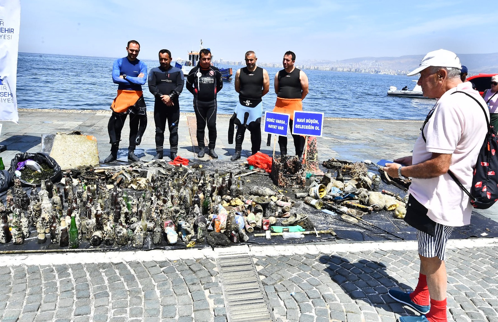 İzmir Büyükşehir Belediyesi Deniz Koruma Şube Müdürlüğü Bölge Sorumlusu Saygın Yörük, “İnciraltı’ndan Mavişehir’e kadar olan iç Körfez’de hem denizden hem karadan düzenli olarak temizlik çalışması yapıyoruz. Yılda ortalama bin ton katı atık çıkıyor. Bu atıklar doğada kolay kolay kaybolmuyor. Plastik atıkların üretilmesi saniyeler, kullanılması dakikalar, doğada kaybolması yüzyıllar hatta bin yıllar alabiliyor. Cam şişeler doğada 4 bin yıl kalıyor. Oysa bunların geri dönüşümünü sağlamak mümkün. Bu nedenle mavi Körfez, mavi yarınlar için denizimizi ve çevremizi koruyalım” dedi.