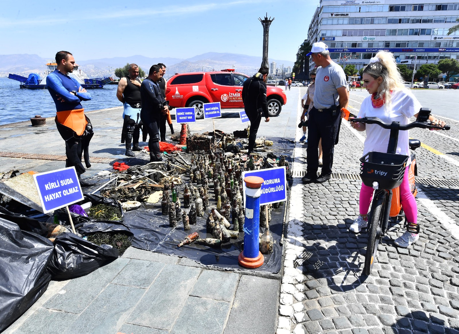 İzmir Büyükşehir Belediyesi’nin 5 Haziran Dünya Çevre Günü nedeniyle çevre bilincini artırmak ve farkındalık yaratmak amacıyla düzenlediği etkinlikler başladı. Körfez’in Cumhuriyet Meydanı kısmında dip temizliği yapıldı. Denizden çıkan cep telefonundan içecek kutularına, sepete ve trafik dubasına kadar çeşitli atıklar görenleri hayrete düşürdü.