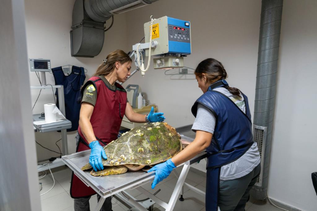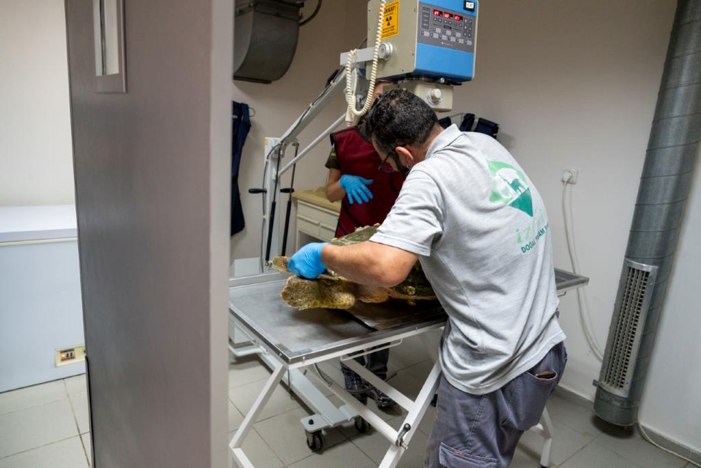 Küçük Hayvan Polikliniği’nde ilk müdahalesi yapılan deniz kaplumbağası İzmir Büyükşehir Belediyesi Doğal Yaşam Parkı’na götürüldü. Buradaki veteriner hekimler travmaya yönelik tedavi sürecine başladı. Deniz kaplumbağası, tedavisinin ardından Doğa Koruma Milli Parklar İzmir İl Müdürlüğü tarafından Muğla Deniz Kaplumbağaları Araştırma, Kurtarma ve Rehabilitasyon Merkezi’ne (DEKAMER) nakledilecek.
