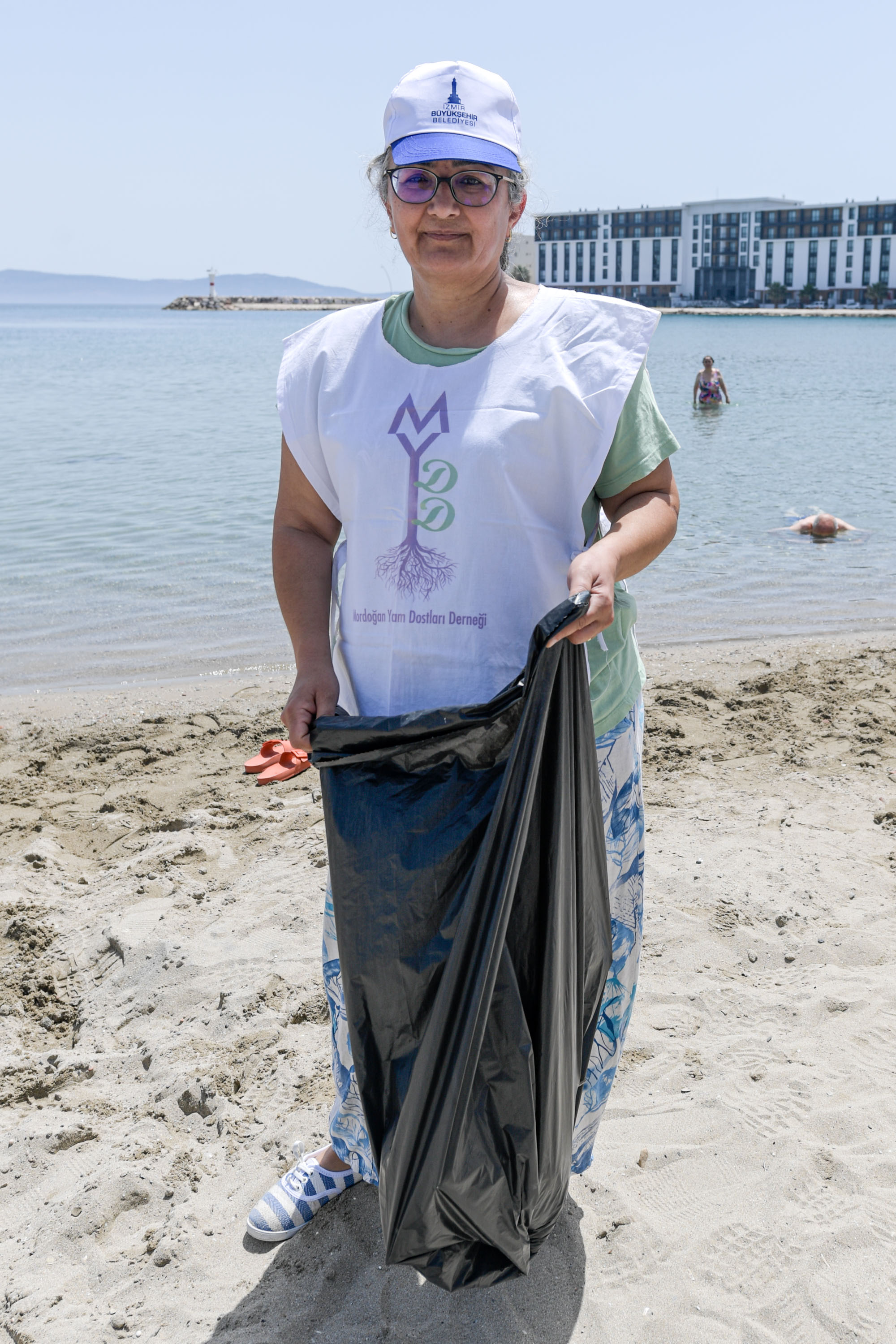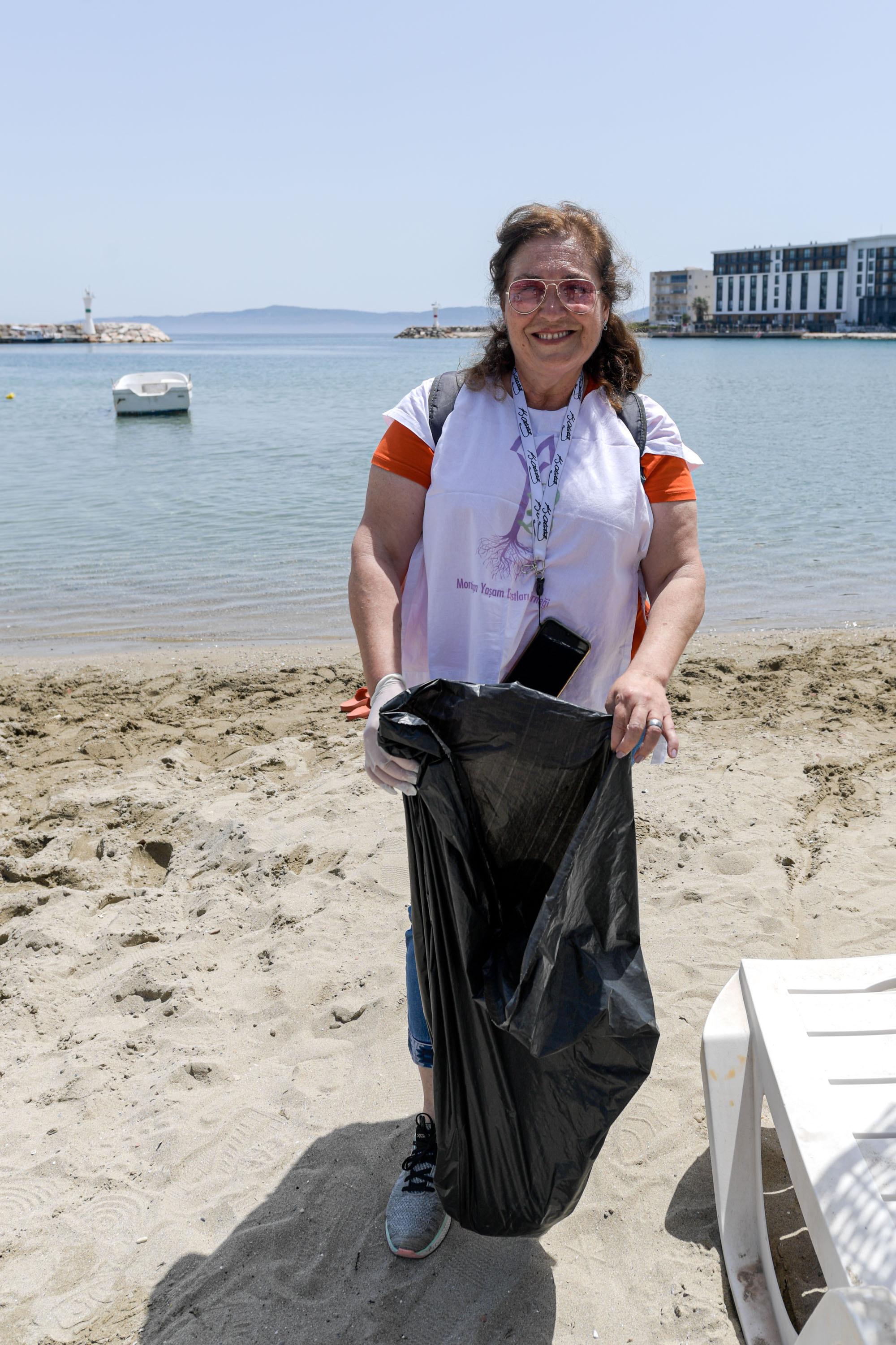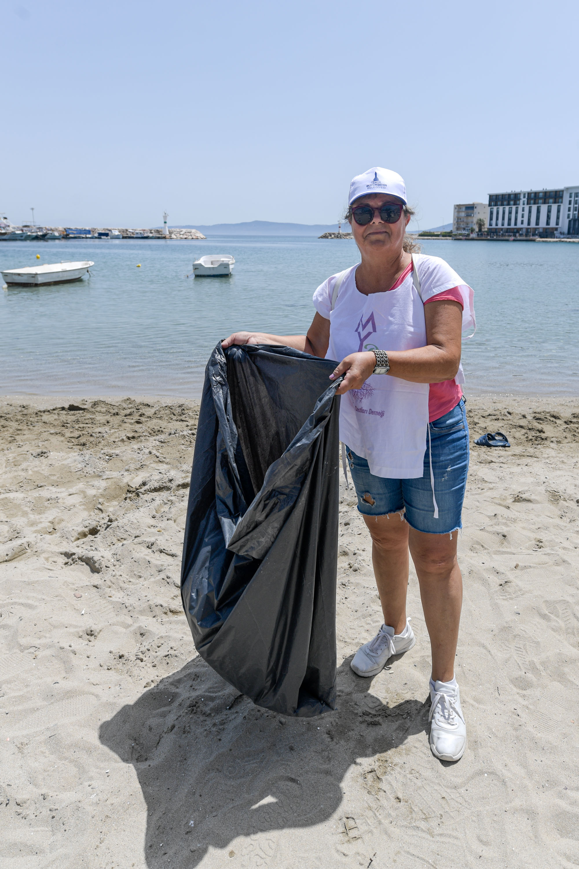 Aygül Karadağ ise çevre bilincinin önemine değinerek, şunları söyledi: “İş bizde, ailelerde başlıyor. Herkes görevini yaparsa, denizlerimiz mavisini kaybetmeyecek. Tertemiz olacak. Balıklarımız yaşayacak. Biz de çocuklarımızın ayağına kumsalda bir şey battı mı diye tedirgin olmayacağız. Cam kırıklarından, sigara izmaritlerine kadar çeşitli atık topladık. Bunların atılmaması önemli. Bu bilinci yerleştirmemiz gerekiyor.”