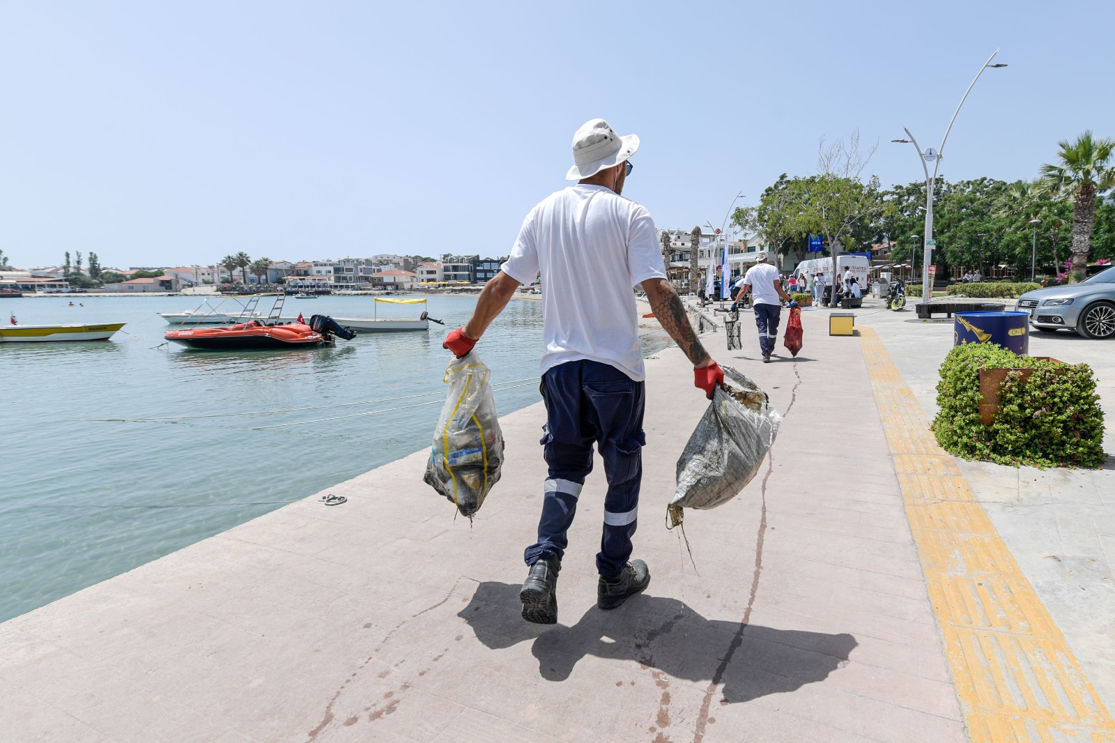 İzmir Büyükşehir Belediyesi’nin ilçe belediyeleri ve çevre gönüllüleri ile birlikte yüzme sezonu öncesi sahillerde başlattığı temizlik çalışmaları devam ediyor. 5 Haziran Dünya Çevre Günü nedeniyle çevre bilincini artırmak ve farkındalık yaratmak amacıyla İtfaiye Dairesi Başkanlığı Su Altı Arama Kurtarma birimi ile Çevre Koruma ve Kontrol Dairesi Başkanlığı ekipleri bu kez de Karaburun’un Mordoğan Mahallesi’nde çevre gönüllüleri ile birlikte atık topladı. Karaburun Belediyesi ekiplerinin de destek verdiği çalışmada, mavi bayraklı Kocakum Plajı baştan sona temizlendi. Plaj tertemiz bir şekilde yaz sezonuna hazır hale getirildi.