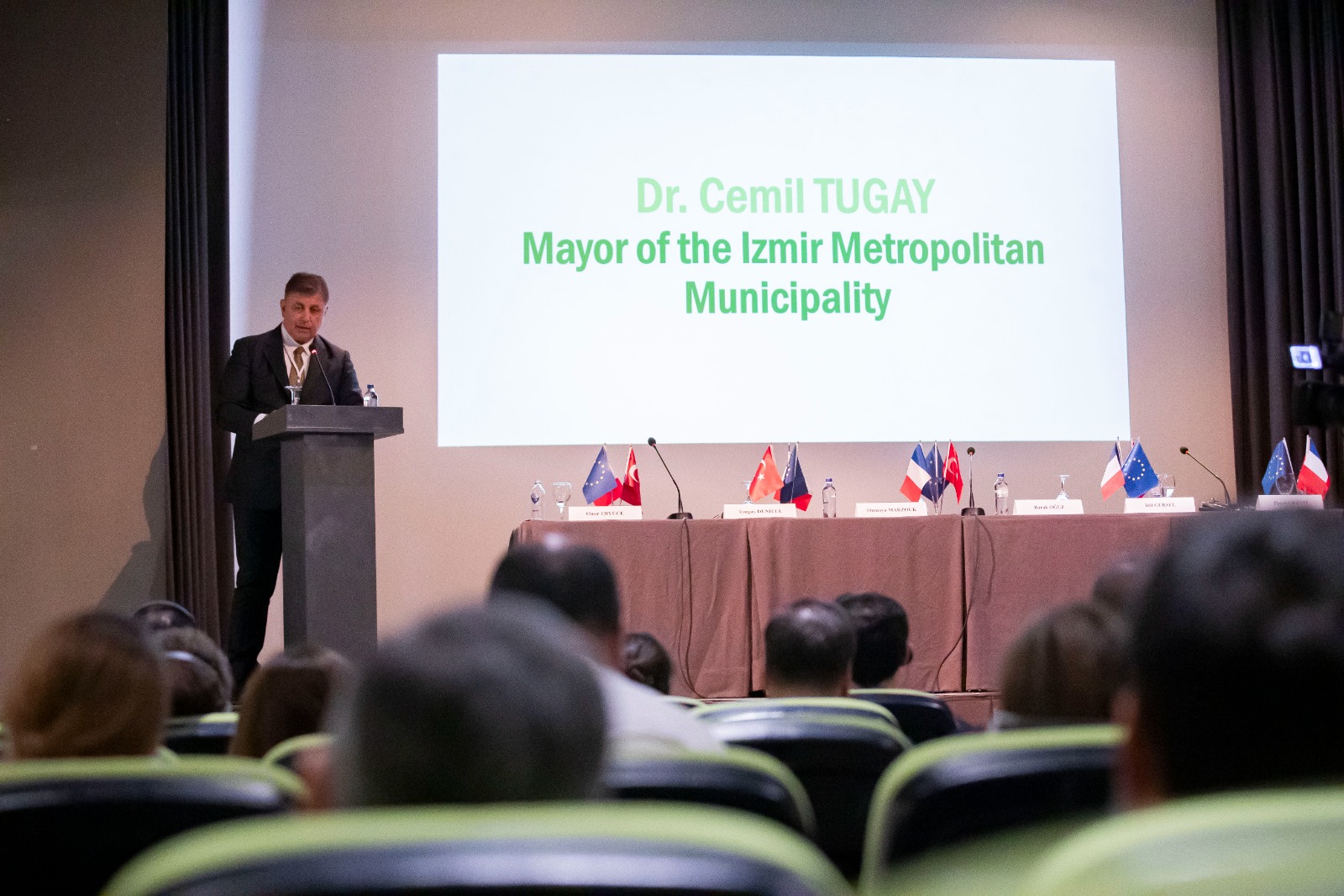 İzmir Büyükşehir Belediye Başkanı Dr. Cemil Tugay, “Geleceği Birlikte İnşa Etmek: Sürdürülebilir Şehirler Üzerine Fransız-Türk İş Birliği” başlıklı toplantıya katıldı. Fransız Kalkınma Ajansı (AFD) ile iş birliklerini artırarak sürdüreceklerini söyleyen Başkan Tugay, “Üç ana önceliğimiz bulunuyor: Körfez’in temizlenmesi, yeşil ekonomik büyüme ve bu büyümeden her toplumsal kesimin yararlanması” dedi.