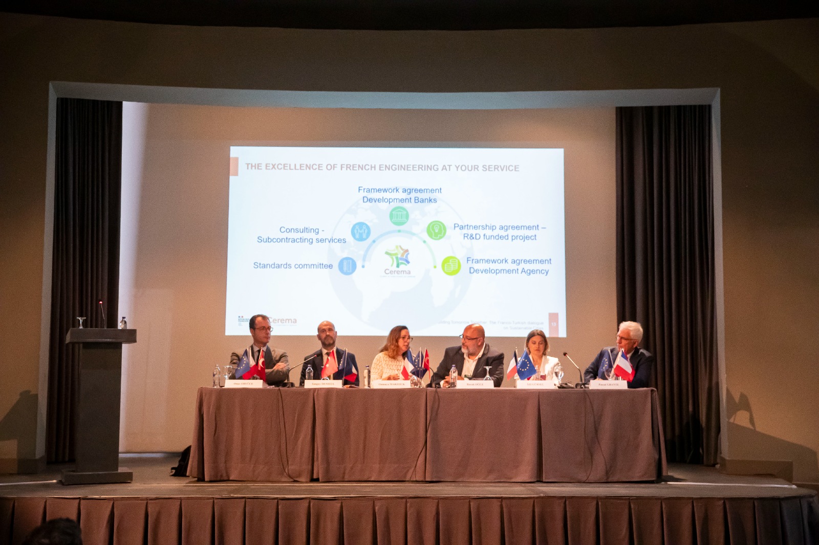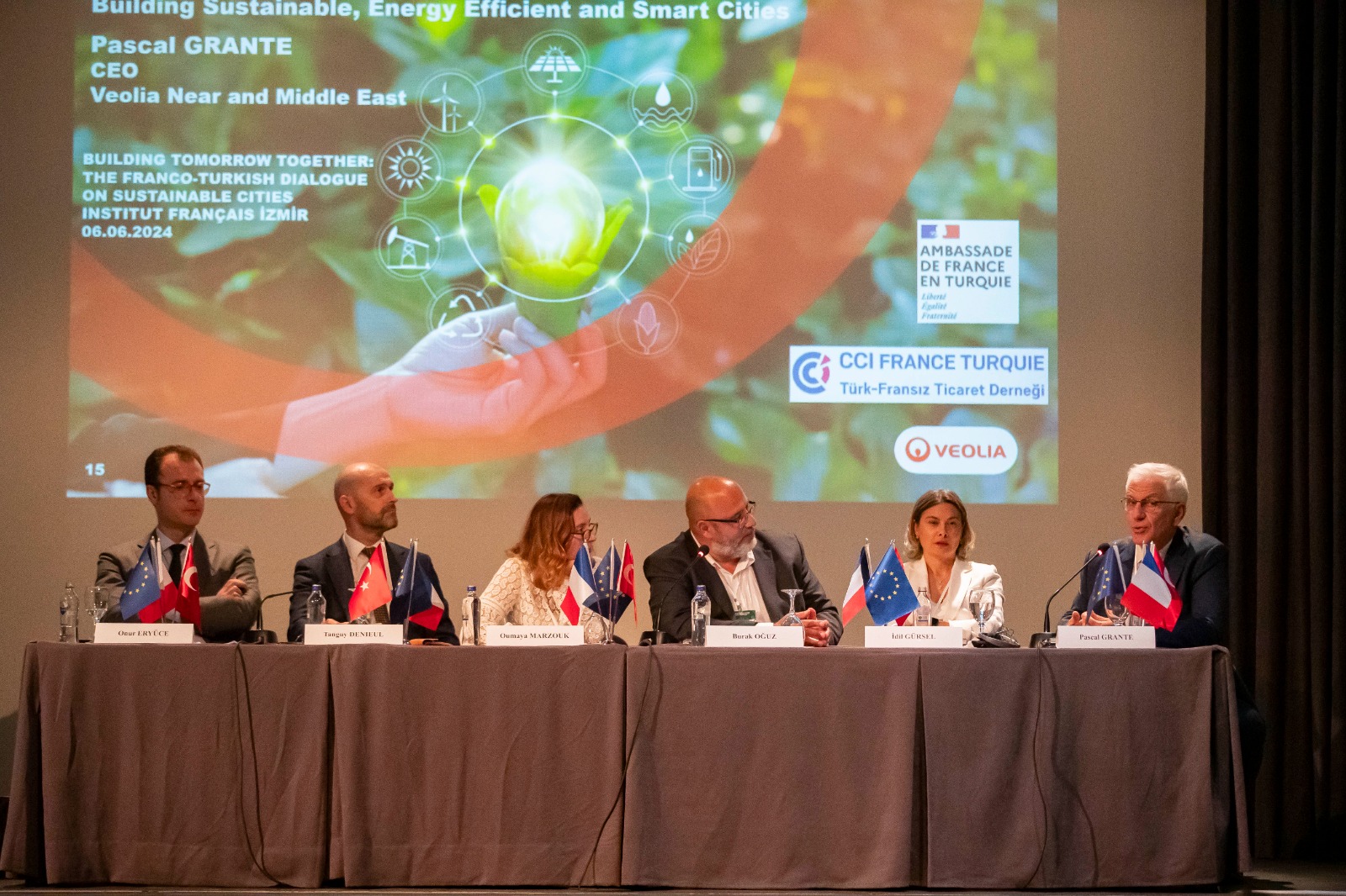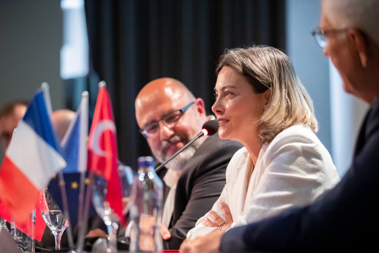 İzmir Büyükşehir Belediye Başkanı Dr. Cemil Tugay, Türk-Fransız Ticaret Derneği tarafından Fransız Kültür Merkezi’nde düzenlenen “Geleceği Birlikte İnşa Etmek: Sürdürülebilir Şehirler Üzerine Fransız-Türk İş Birliği” adlı toplantıya katıldı. Toplantıya Fransa Büyükelçisi Isabelle Dumont, Fransa’nın İstanbul Başkonsolosu Olivier Gauvin, AB Delegasyonu Ataşesi Christian Ballaro, Fransız Kalkınma Ajansı'nın (AFD) Türkiye Direktörü Tanguy Denieul, Türk-Fransız Ticaret Derneği Başkanı Franck Mereyde, uluslararası finans kuruluşlarının temsilcileri, Türkiye ve Fransa iş dünyası üyeleri katıldı.