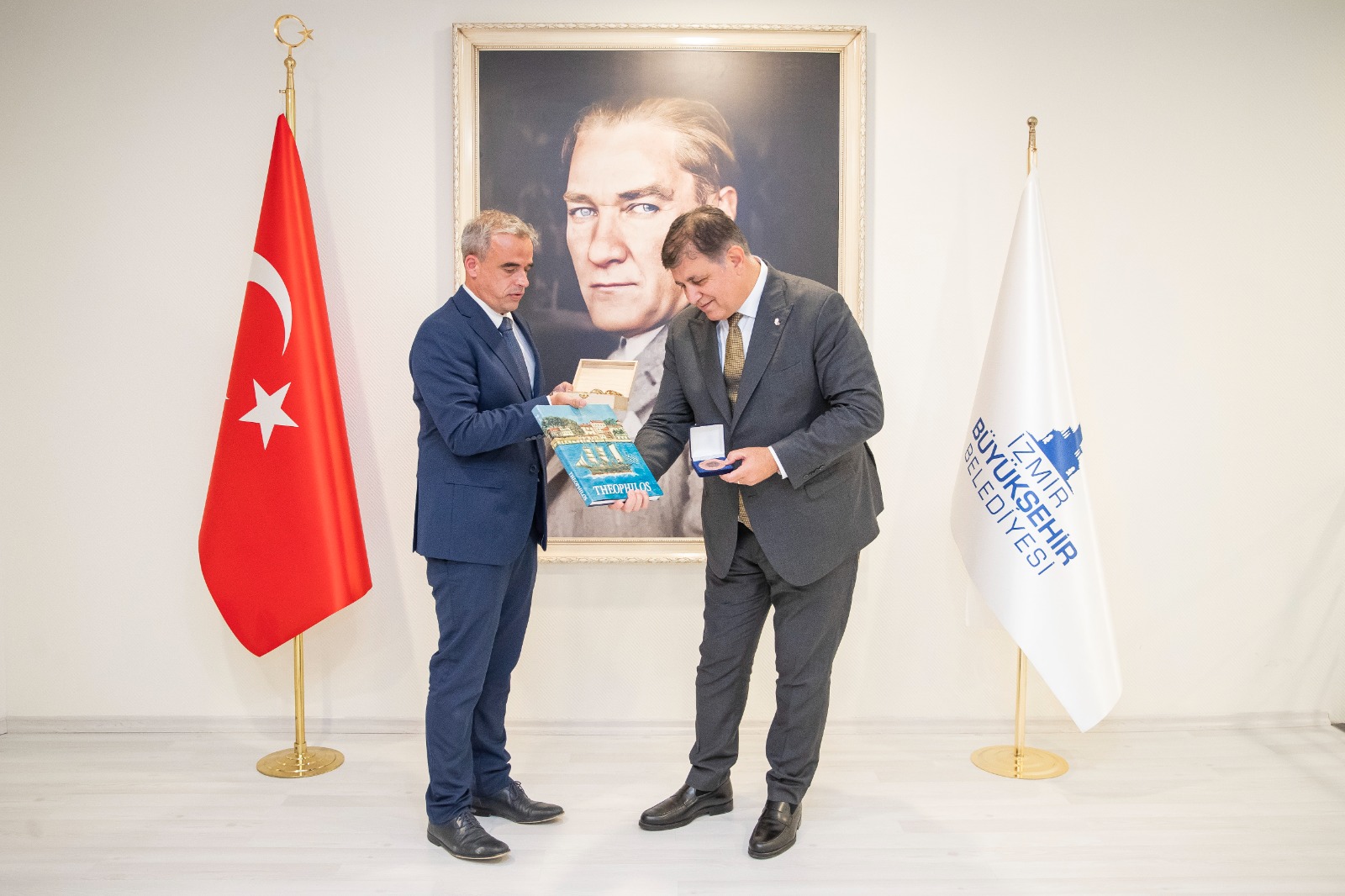İzmir Büyükşehir Belediye Başkanı Dr. Cemil Tugay, Midilli Belediye Başkanı Panagiotis Christofas, Yunanistan’ın İzmir Başkonsolosu Alexandros Konstas ve beraberlerindeki heyeti konuk etti. Ziyarette İzmir Büyükşehir Belediyesi Genel Sekreteri Barış Karcı, İZDENİZ Yönetim Kurulu Başkanı Dr. Işıkhan Güler ve bürokratlar da yer aldı.