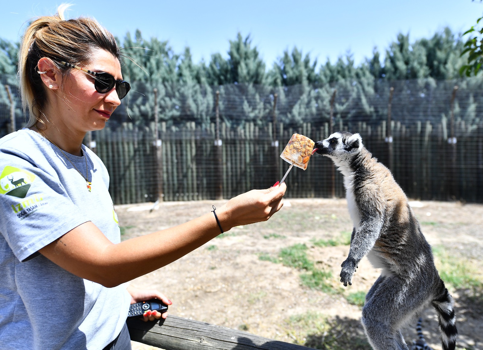 İzmir Büyükşehir Belediyesi’nin 425 bin metrekarelik alan üzerine kurduğu Doğal Yaşam Parkı’nda hava sıcaklıkların artması ile birlikte hayvanların beslenmesinde serin menüye geçildi. Buz kalıplarında dondurulan meyveler, park sakinlerinin serinlemesi için alternatif olarak sunuluyor. Halka kuyruklu lemurlar için de fındık, dut, kayısı ve badem gibi besinler buz kalıplarında dondurularak servis ediliyor. Park sakinleri, buzlu meyveleri yiyerek serinliyor.