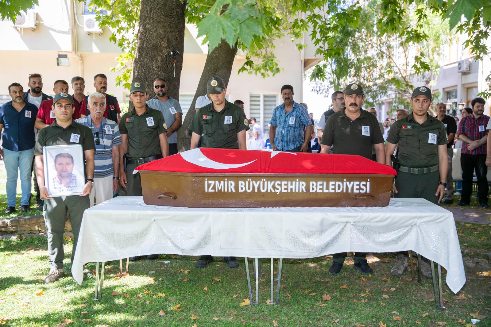 İzmir Büyükşehir Belediye Başkanı Dr. Cemil Tugay, Bayındır'da çıkan yangına müdahaleden dönerken kaza sonucu hayatını kaybeden İzmir Orman İşletme Müdürlüğü'nde görevli orman işçisi Serkan Topkaya için düzenlenen törene katıldı.