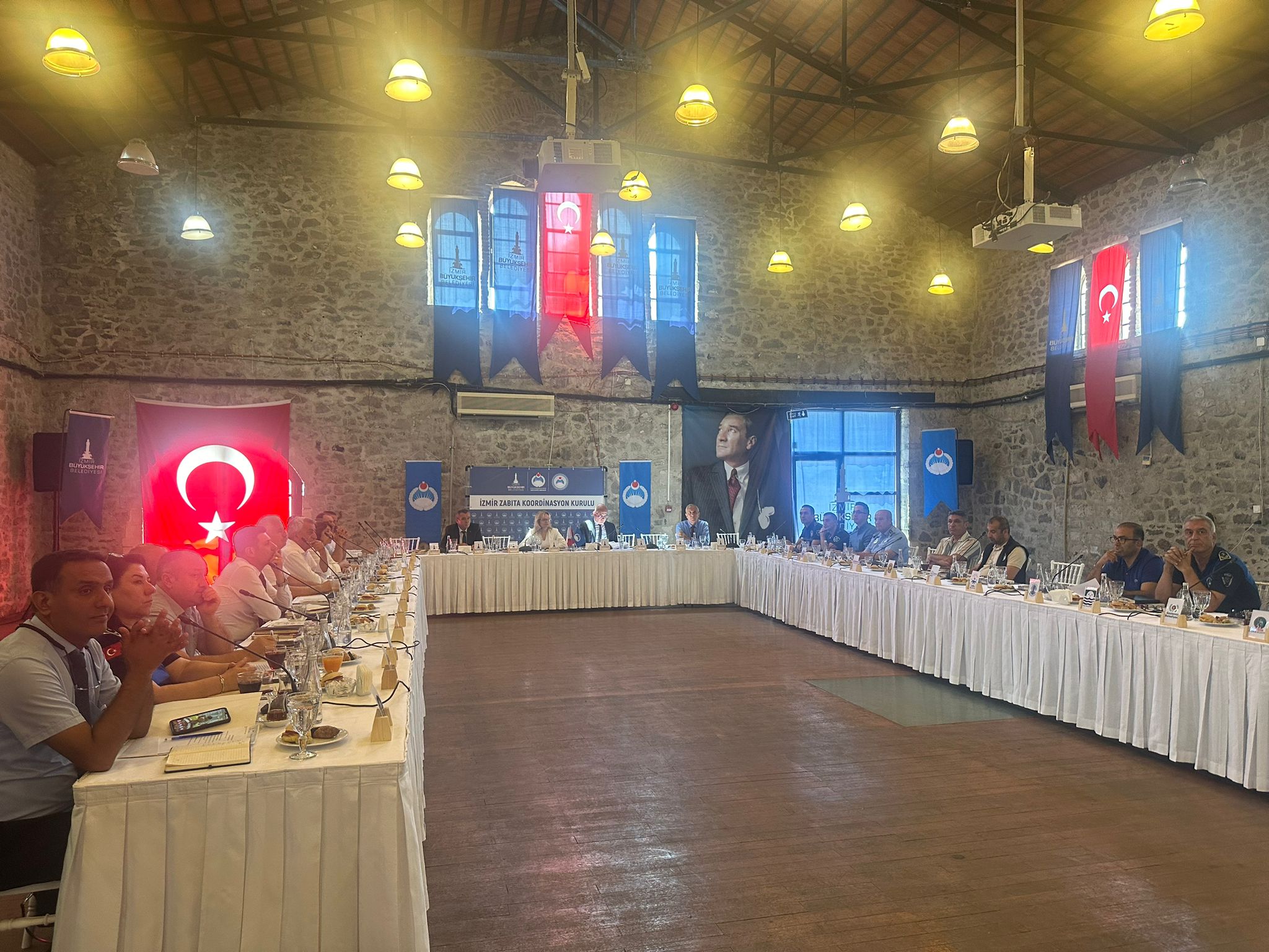 İzmir Büyükşehir Belediyesi Zabıta Dairesi Başkanlığı’nın 30 ilçe belediyesinin zabıta müdürleriyle kolektif çalışmasını amaçlayan İzmir Zabıta Koordinasyon Kurulu’nun 6.’sı, Havagazı Fabrikası’nda düzenlendi. İzmir Büyükşehir Belediyesi Genel Sekreter Yardımcısı Şükran Nurlu’nun katılımıyla gerçekleştirilen toplantıda, kentteki düzeni sağlayan uygulamalara ilişkin önemli veriler paylaşılırken, zabıta teşkilatlarının koordinasyonu konusunda yol haritası belirlendi. Toplantıda, kent gündeminde yer alan karavan konusu da konuşuldu. İnciraltı’nda 259, Karşıkaya’da 174 olmak üzere 433 karavanın tahliye edildiği bilgisi paylaşılırken, konuyla ilgili değerlendirmede bulunan İzmir Büyükşehir Belediyesi Genel Sekreter Yardımcısı Şükran Nurlu, İzmir Büyükşehir Belediyesi’nin ilgili birimlerinin yeni karavan park alanlarını tespit etmek üzere çalıştığını ifade etti.