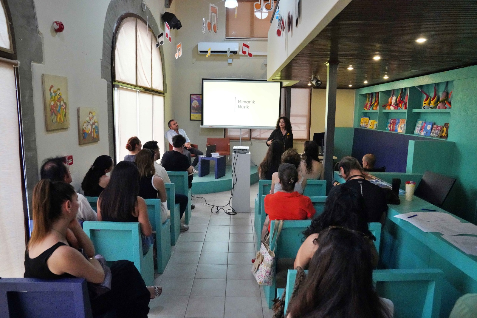 AASSM Müzik Kütüphanesi’nde yıl boyu çeşitli söyleşi ve seminer ve atölyeler düzenleniyor. Kütüphanenin mimarı olan mimar ve müzisyen Cenk Dereli’nin “Müzik ve Mimari” adlı söyleşisine katılan katılımcılar da kütüphaneyi çok beğendiklerini dile getirdi. Nehir Aktaş isimli ziyaretçi, “Ben müzikle ilgilenen biriyim. Müzik Kütüphanesi’ne de söyleşiye katılmak için geldim ve kitapları da çok etkileyici buldum. Kentimizde müzikle ilgili kitapların yer aldığı bir kütüphanenin bulunmasını çok önemli buluyorum” dedi. Elzem Aktaş ise “Yabancı dilde eserlerin de olması çok faydalı olmuş. Pek çok insan bu kütüphaneden faydalanabilir. Ben mimarim. Mimarlık üzerine araştırmalar yaparken Müzik ve Mimari söyleşisine katılmaya karar verdim” diye konuştu. Esra Yıldız da “Müzik Kütüphanesi’ni çok beğendim. Bugün bu söyleşiye gelerek müzik ve mimarinin kentle bağlamlarını araştırdık. Keyifli ve verimli bir kütüphane olmuş, ufkumuz açıldı” sözlerine yer verdi.