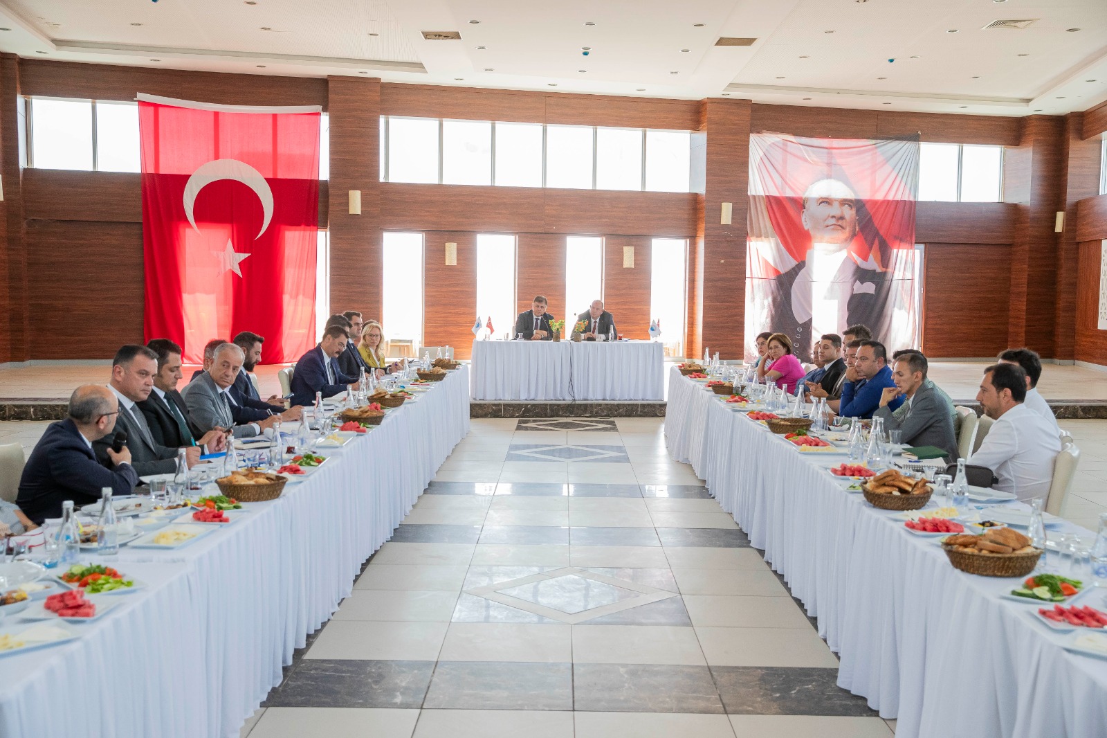 İlçe belediye başkanları ile sık sık görüştüklerini ancak ilçelerin ihtiyaçları ile ilgili daha geniş katılımlı görüşme ve değerlendirme toplantılarını periyodik olarak yapma kararı aldıklarının altını çizen Başkan Tugay, “Büyükşehir Belediyesi ile ilçe belediyeleri tam bir uyum içinde görev yapacak. Birbirinden ayrı belediyeler gibi değil birbirini tamamlayan belediyeler olacak. Bu konuda üzerimize düşen neyse yapacağız. Göreve başladığımız günden bugüne kadar çok iyi bir süreç geçirdik. Bu yakınlığı kurduğumuzu düşünüyorum. Zaman içinde çok daha yakın çalışacağız. Ben ve Büyükşehir Belediyesi’nde görevli olan arkadaşlarımız sizi her konuda dinlemeye, elimizden geleni yapmaya hazırız” dedi.