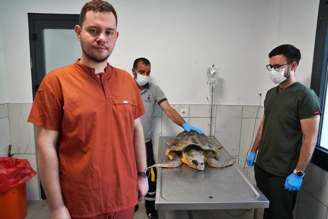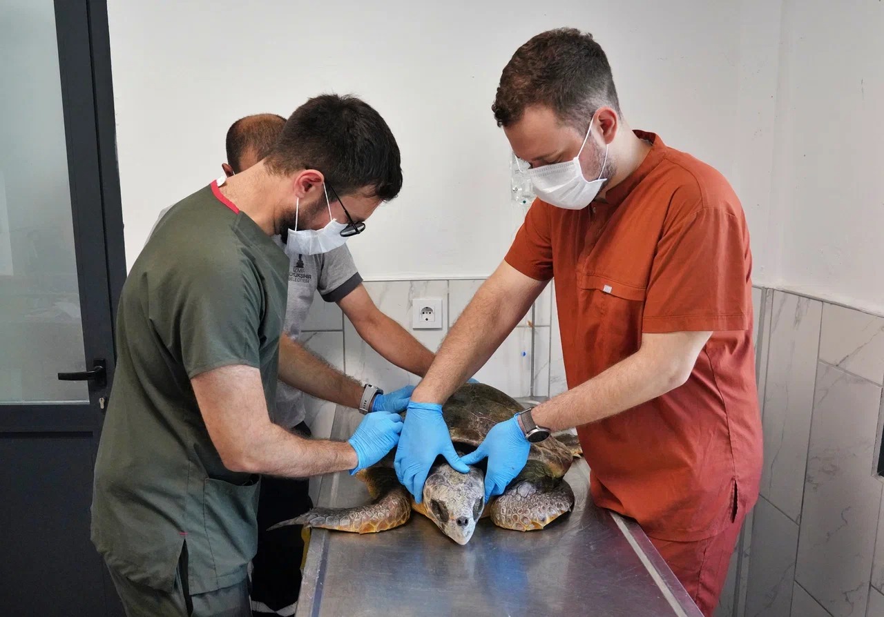 İzmir Büyükşehir Belediyesi Küçük Hayvan Polikliniği’nde görevli Veteriner Hekim Burak Şen, “Çok bitkin bir şekilde bulduğumuz deniz kaplumbağasında iç ve dış parazit tespit ettik. İlk tedavisini yaptık. Serum uyguladık. Kabuğunu sık sık nemlendirerek kurumasını önlüyoruz. Bu süreçte hayatta kalmasını sağlıyoruz. Durumu ilk geldiği güne göre çok daha iyi. Daha da iyi olacağını umuyoruz” dedi.